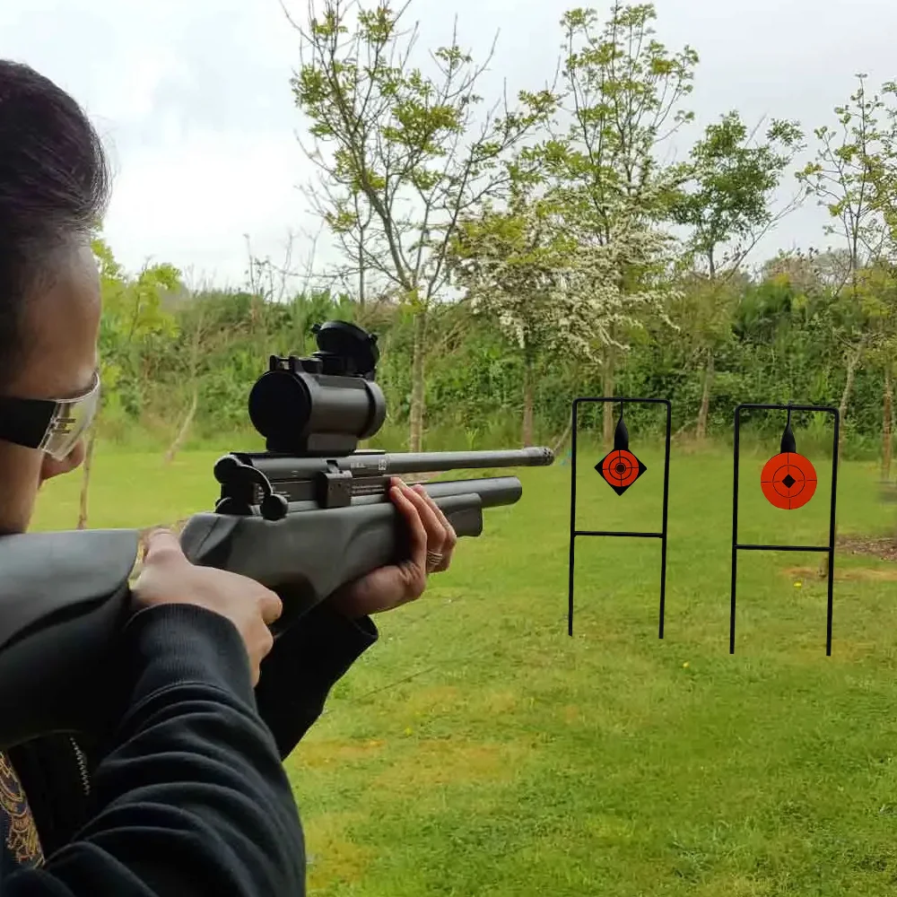 5.Un objetivo de práctica de tiro suspendido adecuado para la práctica de tiro con pistola de aire comprimido.Inserte ambos pies del objetivo en el suelo y golpee el centro del objetivo.El tablero objetivo suspendido girará 360 grados.Es simple y portátil.