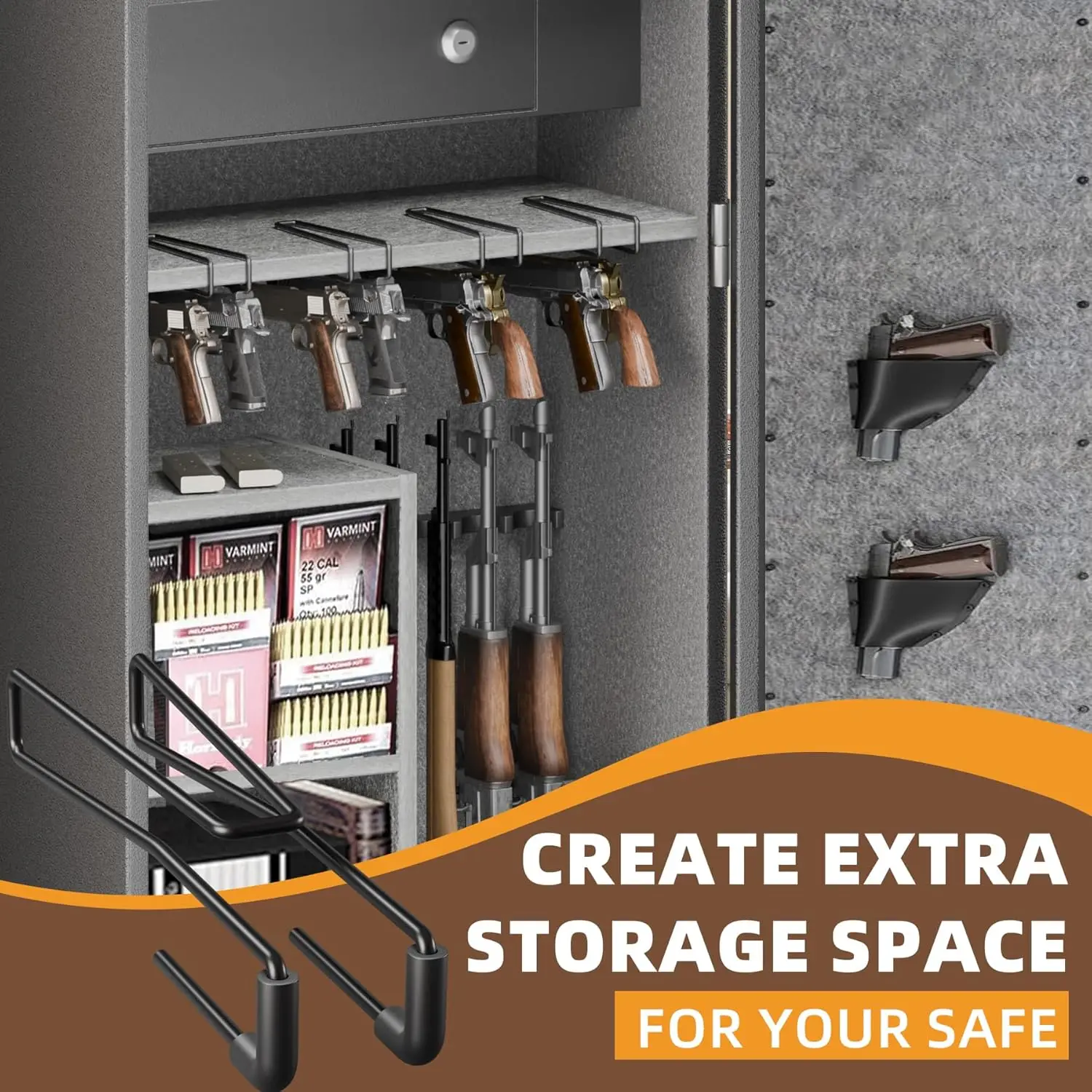 ● Alta calidad: este organizador de armas seguro está hecho de acero de 3/8" de espesor y tiene un diseño de doble estilo más estable, lo que garantiza que pueda almacenar dos pistolas durante mucho tiempo sin deformarse.