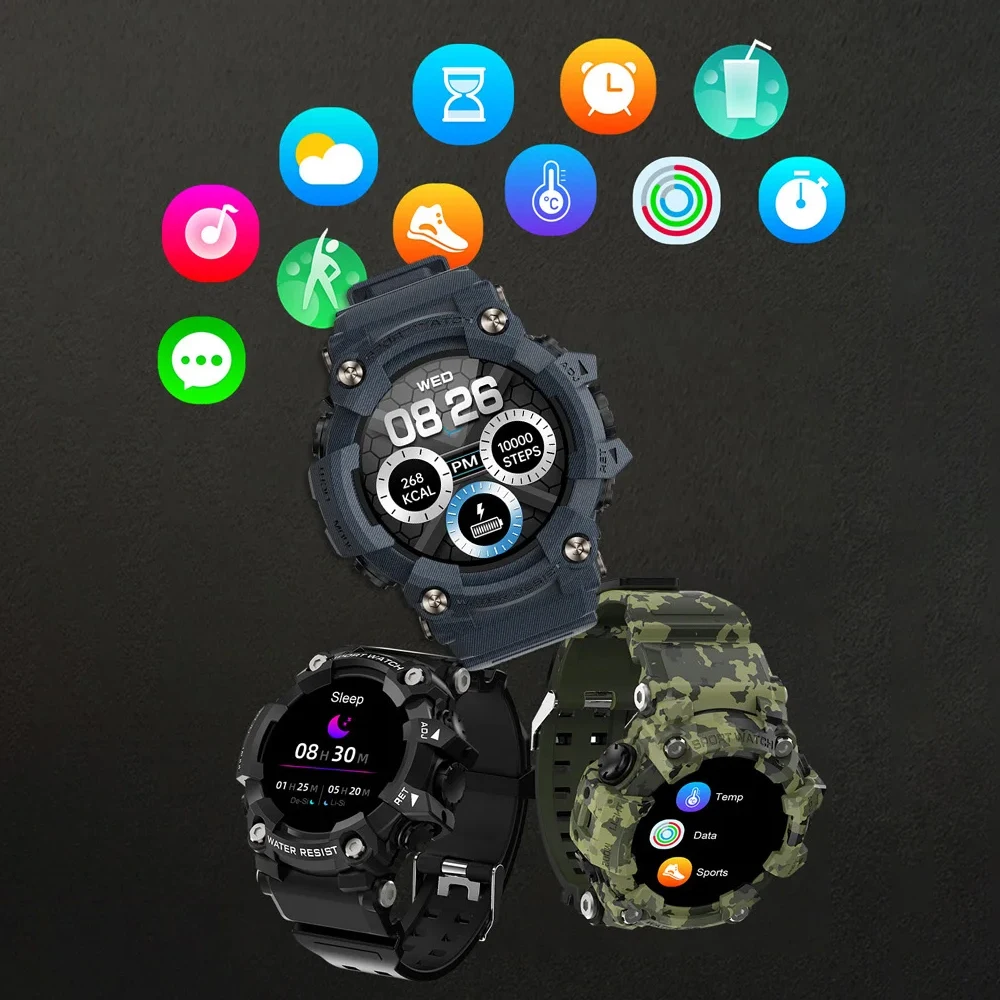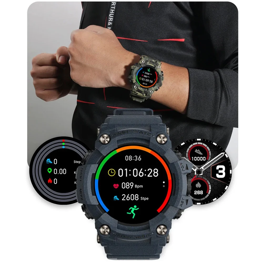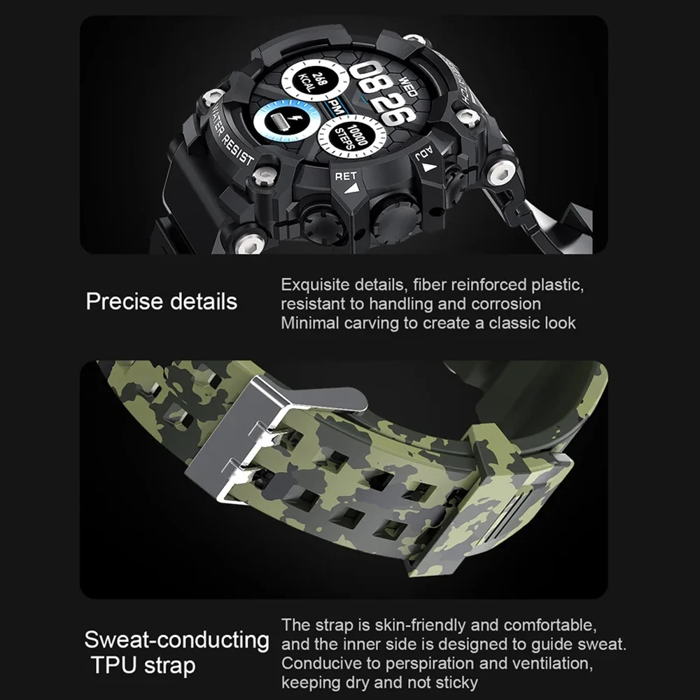 Reloj deportivo inteligente táctico para hombre con monitor de frecuencia cardíaca y presión arterial Reloj de seguimiento de actividad física de 1,3" resistente al agua IP68 de alta definición para exteriores