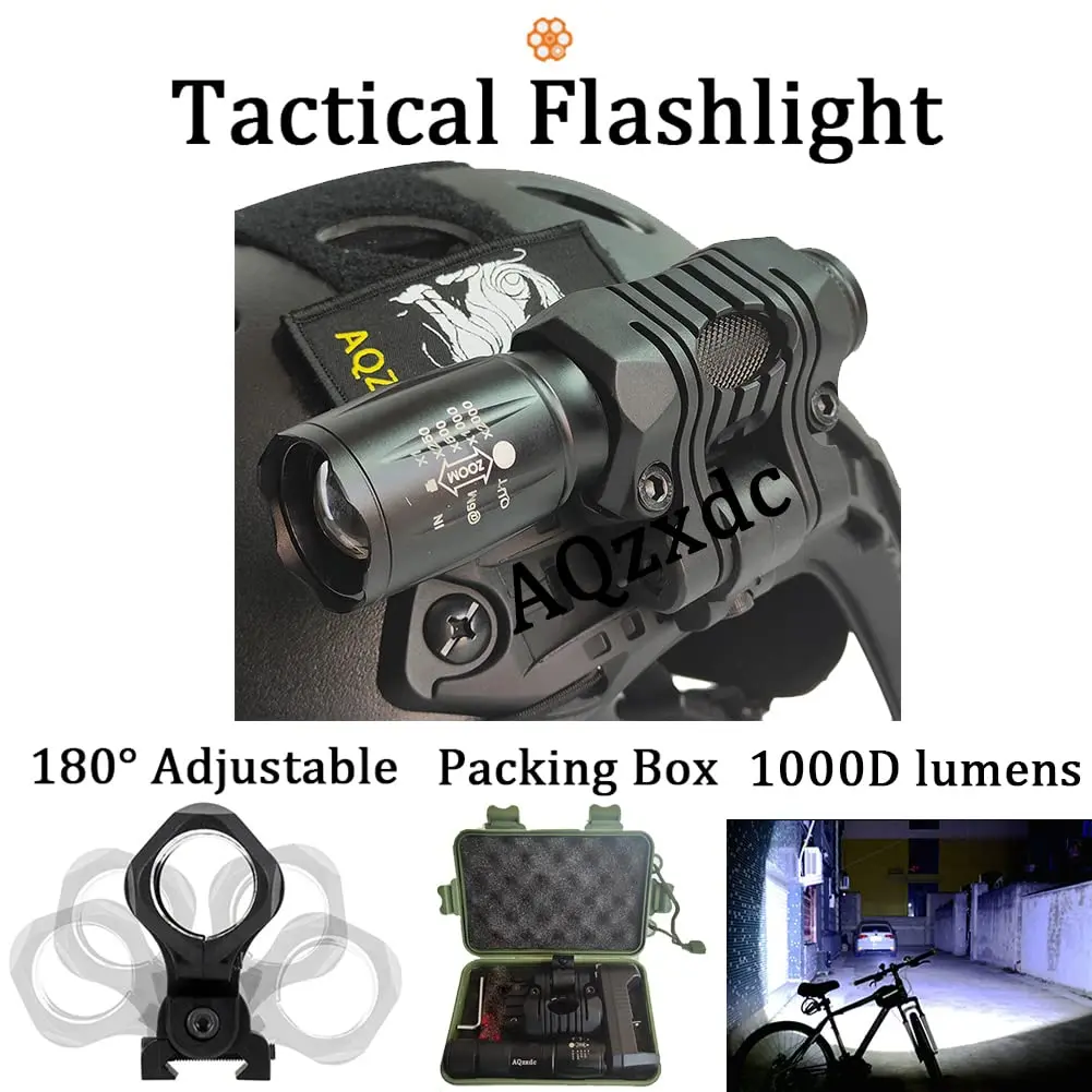 ● T6 1000: linterna táctica de 1000 lúmenes; Material de aleación de aluminio; cinco ajustables: fuerte - medio - débil - estroboscópico - SOS; zoom telescópico de cabeza; Se adapta al clip de linterna de 25 mm, 180° Ajustable; compatible con batería de litio recargable 18650 o batería 3*AAA, producto sin batería.