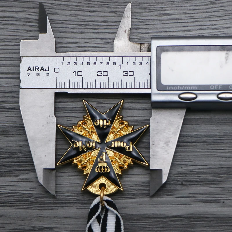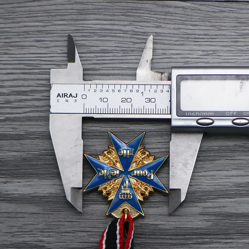 Medalla Marx Merit negra y azul: Disponible en versiones en negro y azul.La inscripción "Pour le Merite" y la elaborada estructura en forma de estrella se recrean delicadamente.Los esquemas de colores de oro negro y oro azul tienen cada uno su propio encanto.Los detalles de la correa tejida combinan con el estilo original de la cinta.Una vez fue el premio más alto otorgado por Prusia a excelentes contribuidores militares y artísticos, y tiene un valor de colección único.