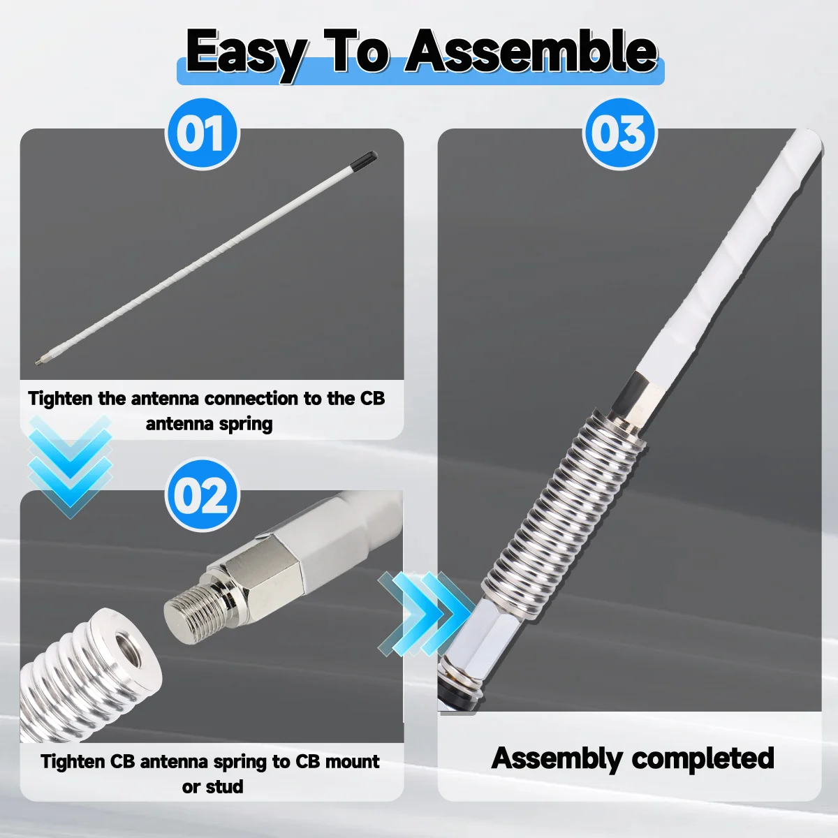 Resorte de antena ABBREE CB de acero inoxidable resistente para coche móvil, vehículo, camión, Radio CB, soporte para antena, compatible con 3/8"-24 hilos