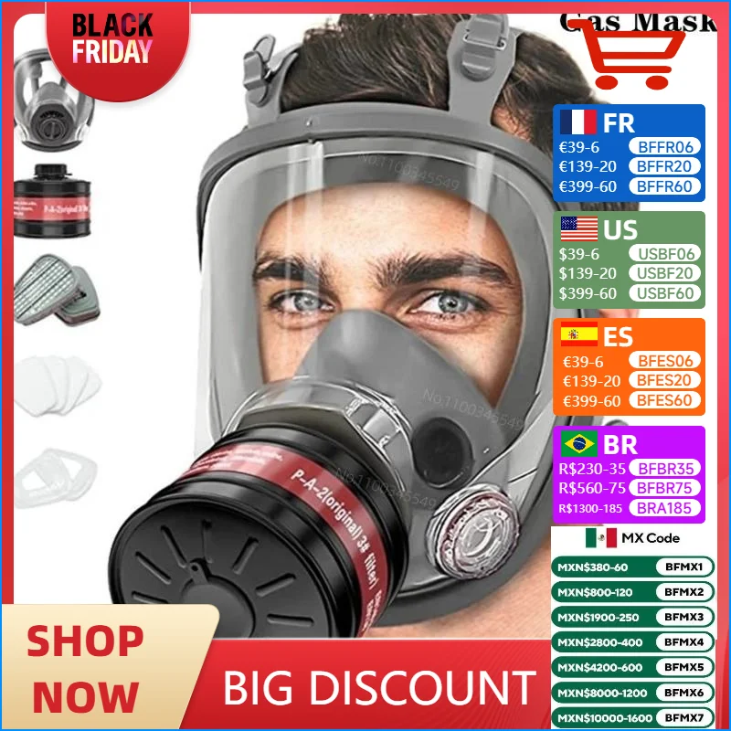 Gas Mask Acid/Organic/Ammonia 6800 Full Face Mask Respirator Paint Chemical Pesticide Laboratory Anti-dust Multifunction Filters
