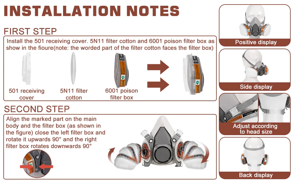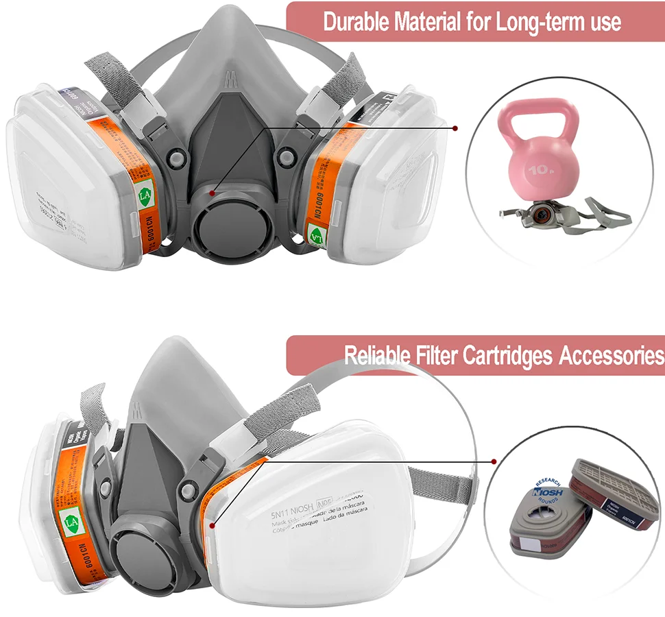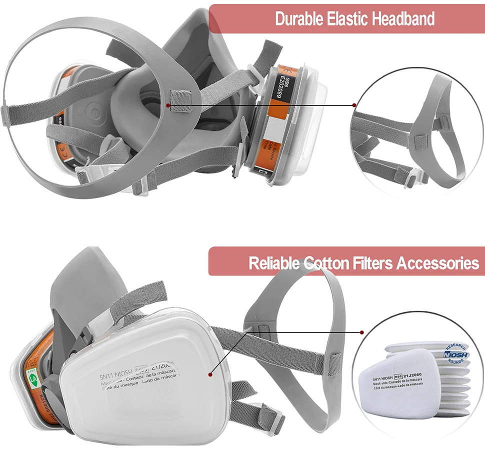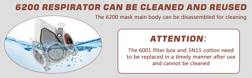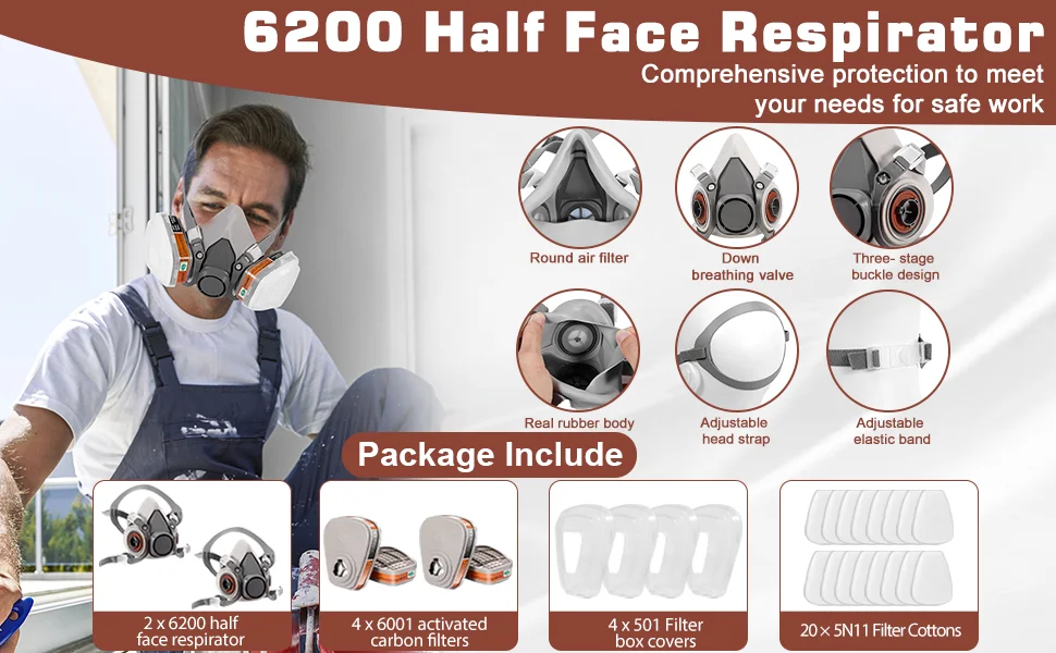 1 máscara 6200.2 filtros de gas orgánico 6001., 2 filtros de algodón 5N11, 2 cubiertas de filtro.