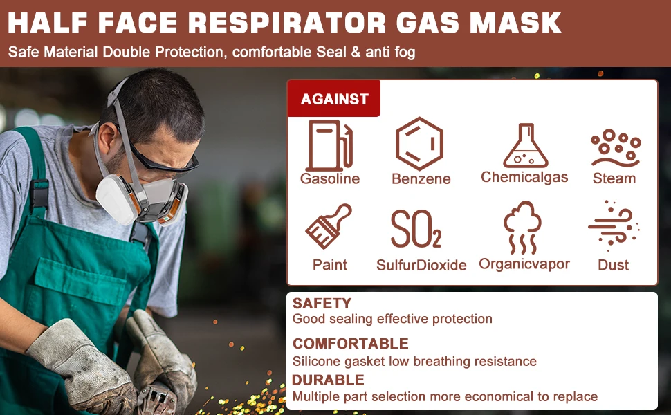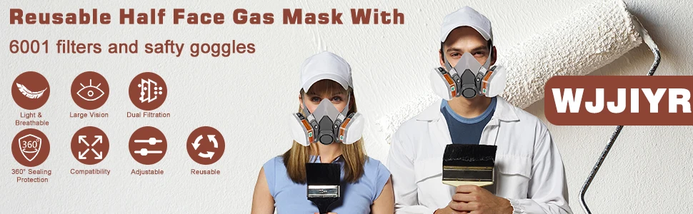 1 máscara 6200, 2x 6001 filtros de gas orgánico, 2 filtros de algodón 5N11, 2 cubiertas de filtro, 1 gafas.