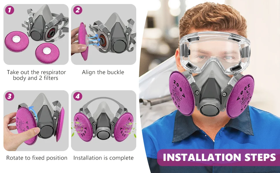 1 máscara 6200, 2x 6001 filtros de gas orgánico, 10 filtros de algodón 5N11, 2 cubiertas de filtro, 1 gafas.
