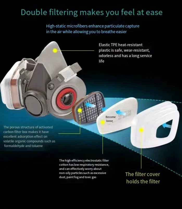 El respirador reutilizable de media cara ofrece versatilidad para muchos entornos y aplicaciones brindando protección contra partículas y una amplia variedad de gases y vapores cuando se usa con cartuchos y filtros aprobados.