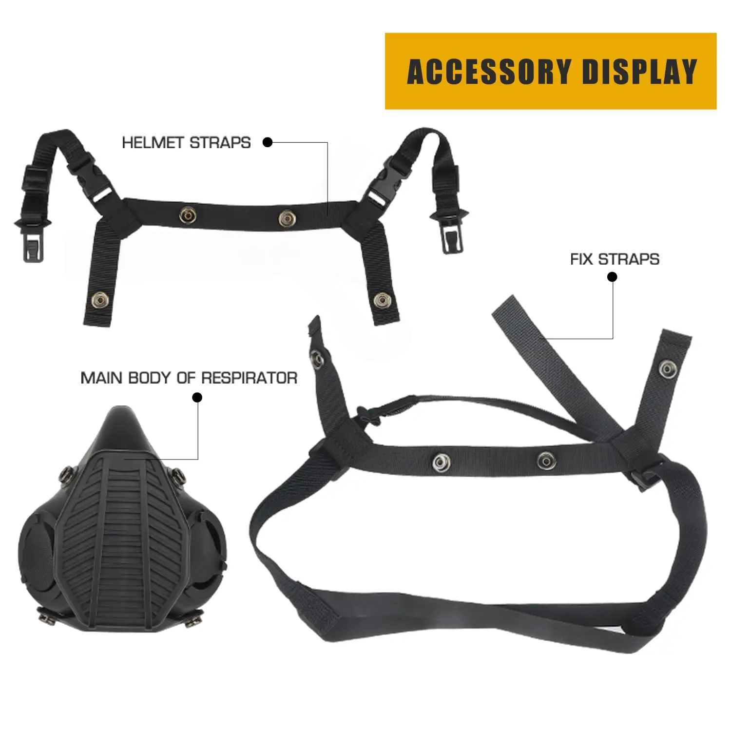Usos múltiples: adecuado como máscara de pintura a base de agua, máscara de construcción, máscara de soldadura, táctica, deportes al aire libre y bricolaje. Protege del polvo de sílice, polvo de ladrillos, polvo de hormigón, cereales y yeso, aerosoles de aceite y partículas en el aire.