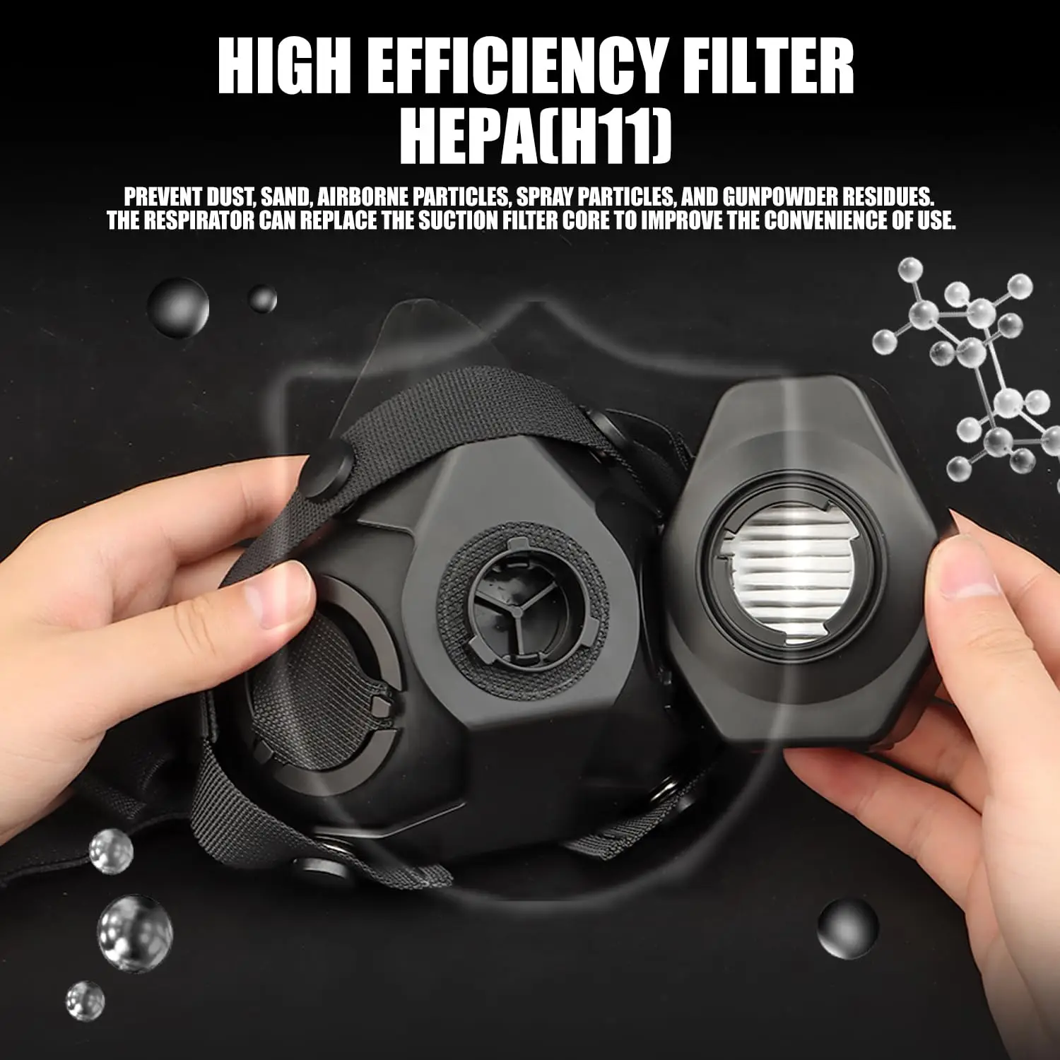 Máscara facial con filtro HEPA (H11) de seguridad: puede ser reutilizable y reemplazable. Apto para deportes al aire libre, en el trabajo, para una máscara de Halloween para todas sus necesidades de fiesta, para preparación para emergencias.