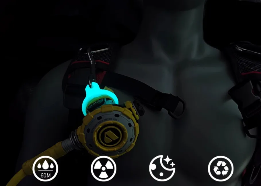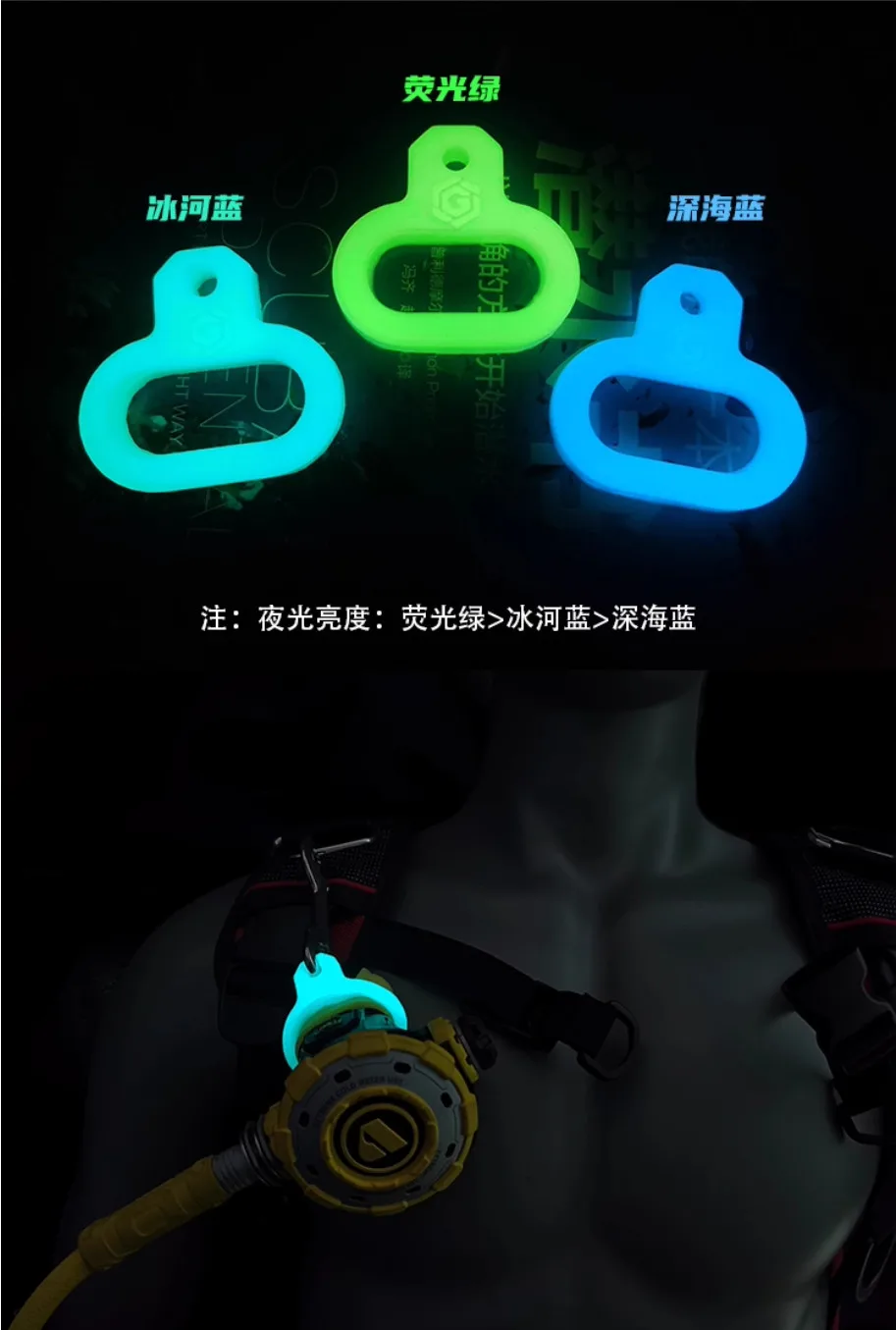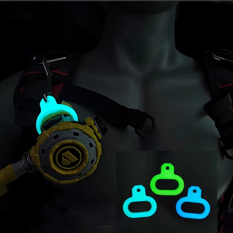 Resplandor de buceo, hebilla luminosa circular de 2ND etapa, ajustador de silicona, gancho de liberación rápida, anillo colgante, accesorios DIY