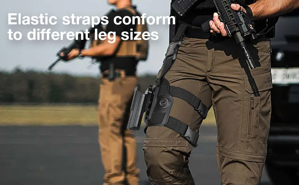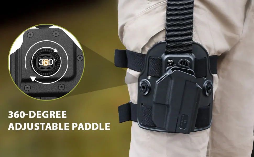 RETENCIÓN NIVEL II: esta funda para muslo ofrece retención de nivel II. Puede llevar esta funda para pierna caída a su pierna derecha y usar la funda con liberación del pulgar de la mano derecha según sus preferencias.Esta funda puede darle acceso exclusivo a sus pistolas y evitar que otras tomen su arma.