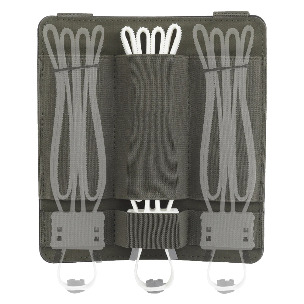 La manguera es un cartel organizativo simplista diseñado para utilizar el espacio muerto entre la bolsa de la placa trasera y el panel trasero.La manguera también puede ser MOLLE en cualquier lugar para satisfacer las necesidades del usuario.Las tres (3) columnas elásticas se pueden utilizar para retenerPuños flexibles, bengalas, bolígrafos innovadores, TQu otro equipo de tamaño similar.El elástico inferior sirve para proporcionar retención adicional o enrutamiento de cables.