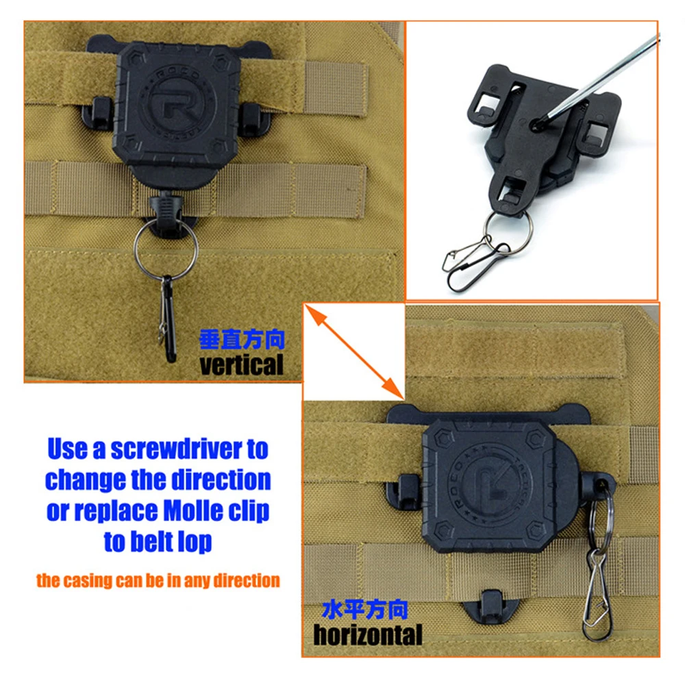 Retractor de equipo táctico, correa de equipo táctico Molle, llave retráctil/multiherramientas, presilla para cinturón y clip Molle incluido, 1 pieza