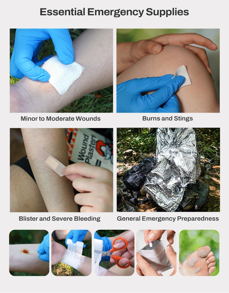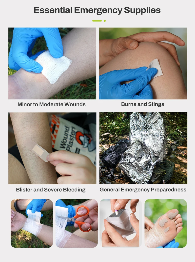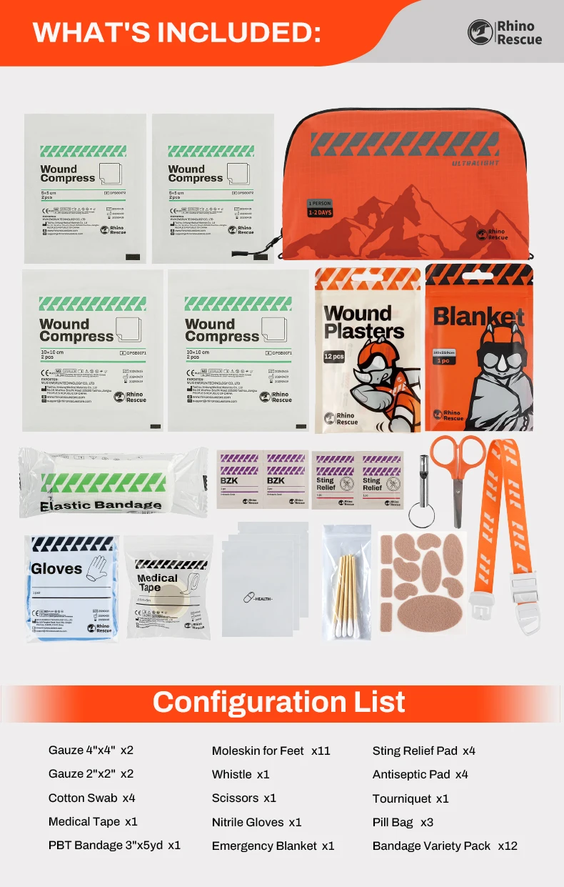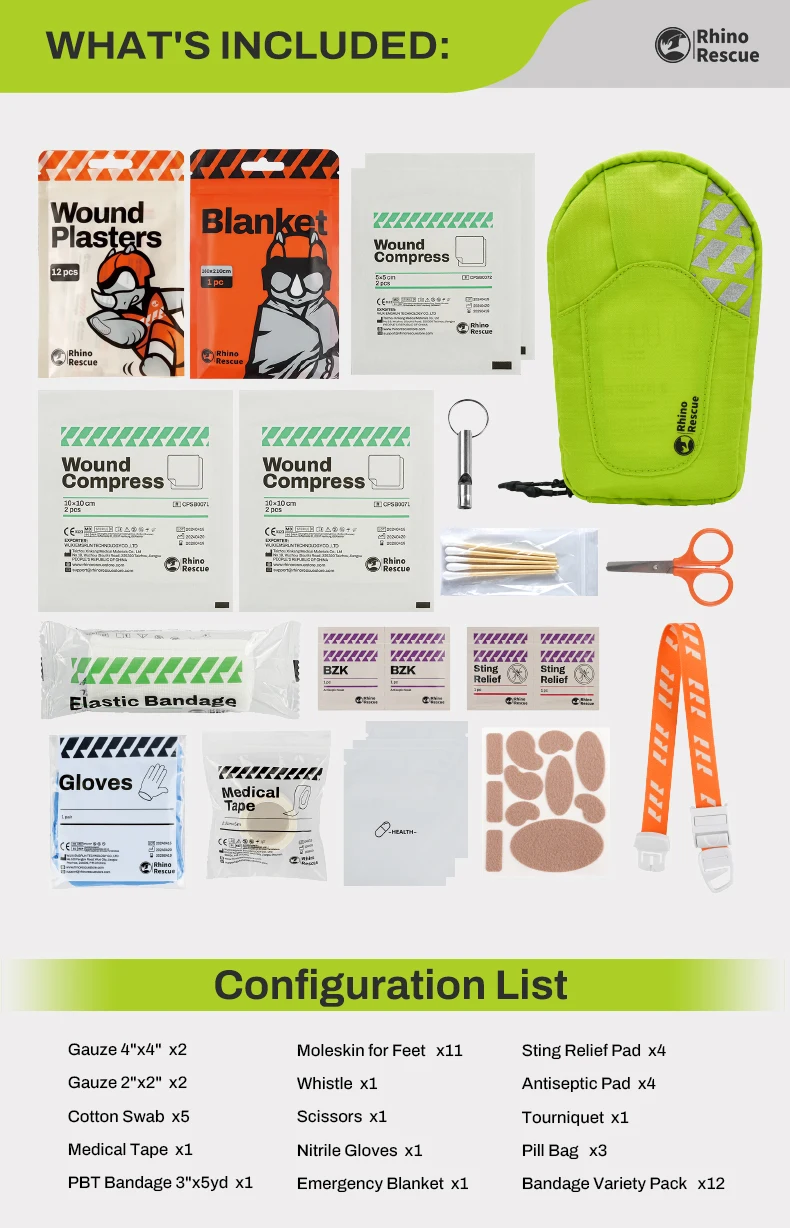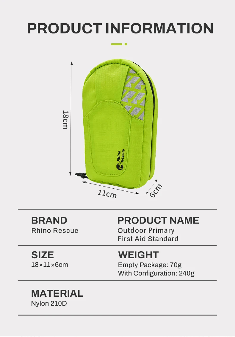 Kit de primeros auxilios muy útil y ligero. También incluye un torniquete, un kit muy completo. Lo recomiendo para la mochila.