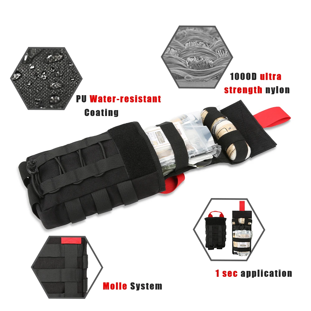 La bolsa permite al primer respondedor sacar los suministros de primeros auxilios en 3 segundos. En caso de emergencia, este kit de trauma IFAK ahorra tiempo y salva vidas.