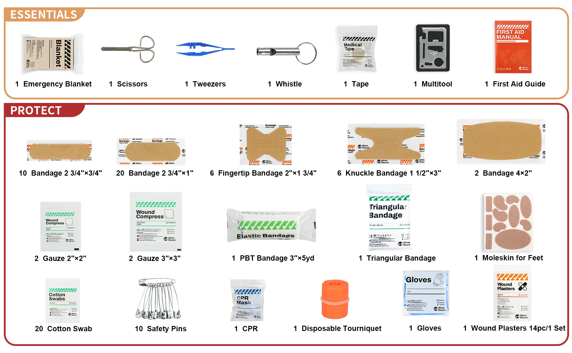 Disfrute de su actividad: realice una transición sin problemas desde mochileros, caminatas, escalada, campamentos hasta kayak sin necesidad de alterar su botiquín de primeros auxilios.El mini botiquín de primeros auxilios es indispensable para actividades al aire libre.Este kit médico también es un activo valioso para automóviles, vehículos y bicicletas en caso de momentos inesperados.