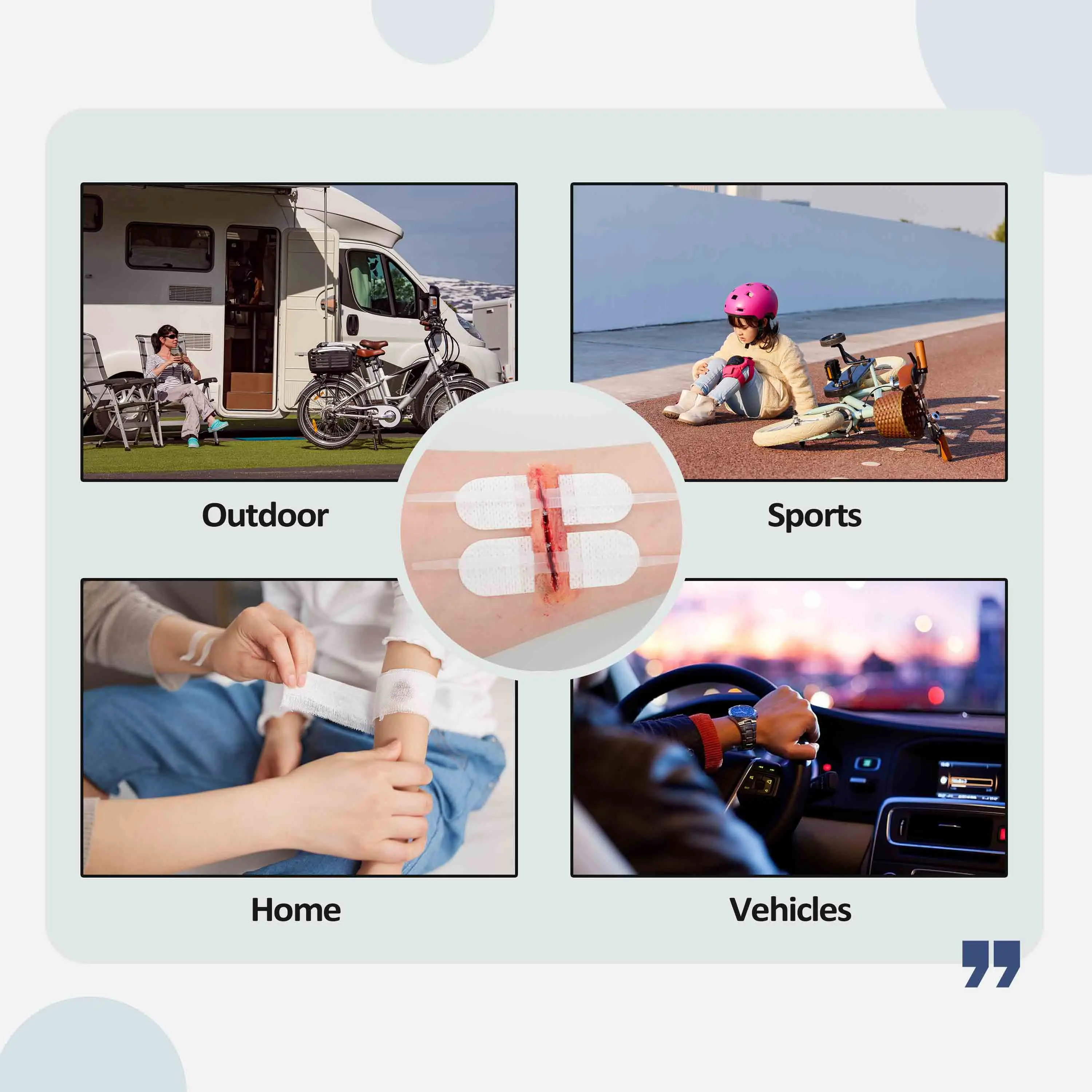 Evite viajes estresantes y caros a la sala de emergencias o atención de urgencias con cierres de piel rápidos asequibles, fáciles de usar, seguros y seguros. Elimina la necesidad de puntos.