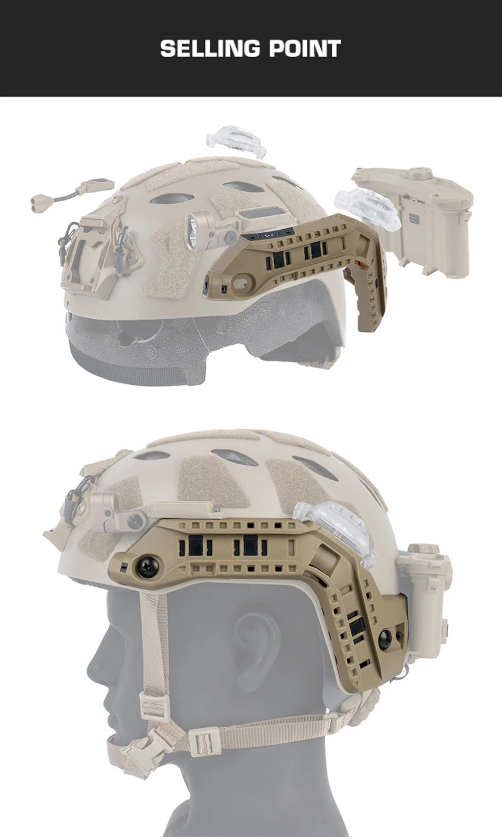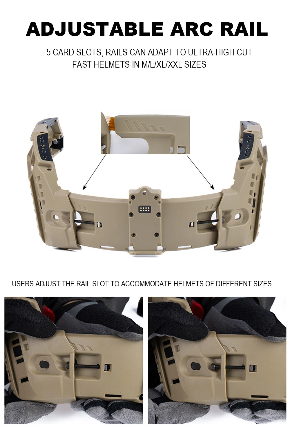 Riel de arco modular táctico para montaje rápido en casco Airsoft, caja de batería integrada, sistema de fuente de alimentación, accesorios ajustables para casco