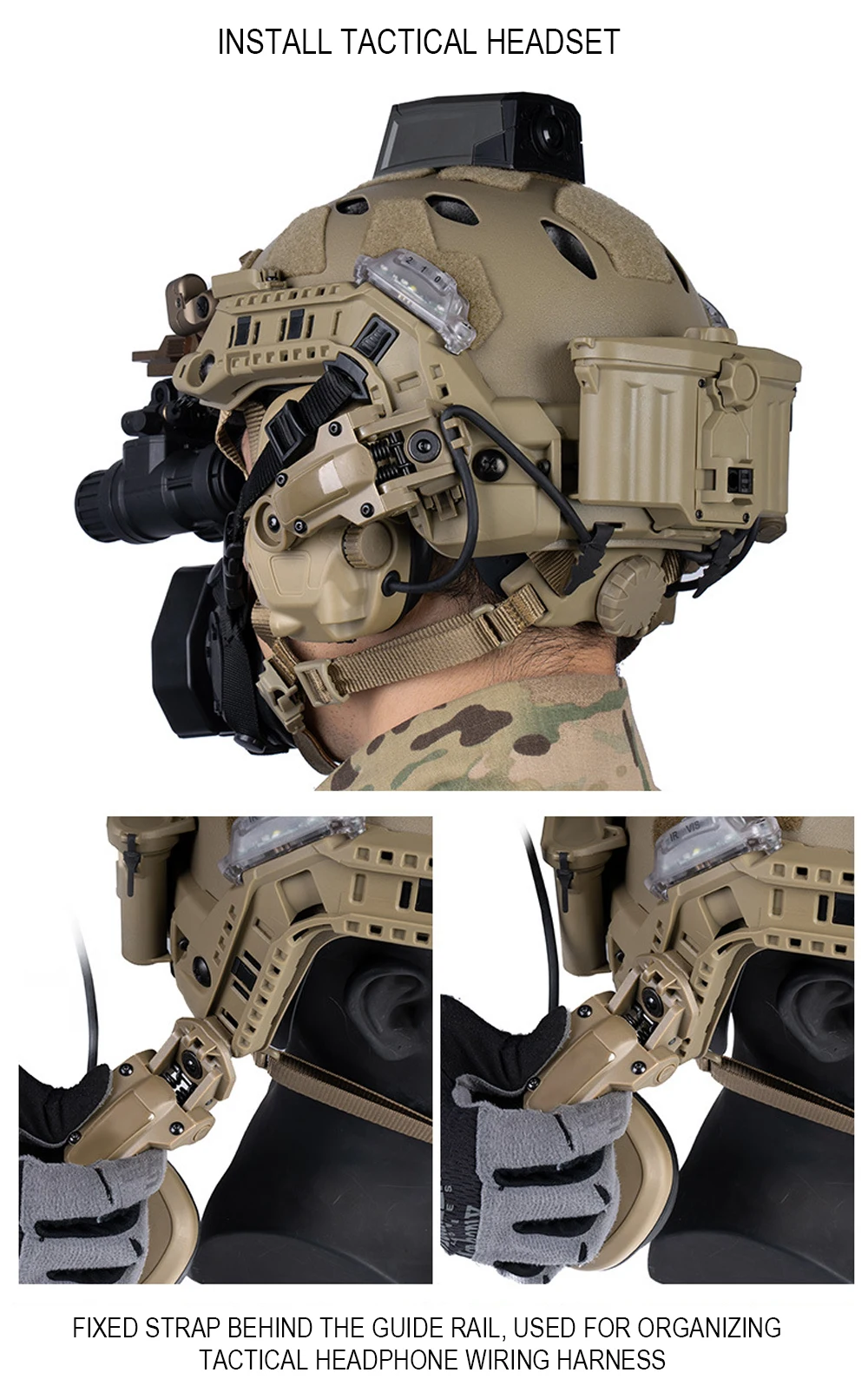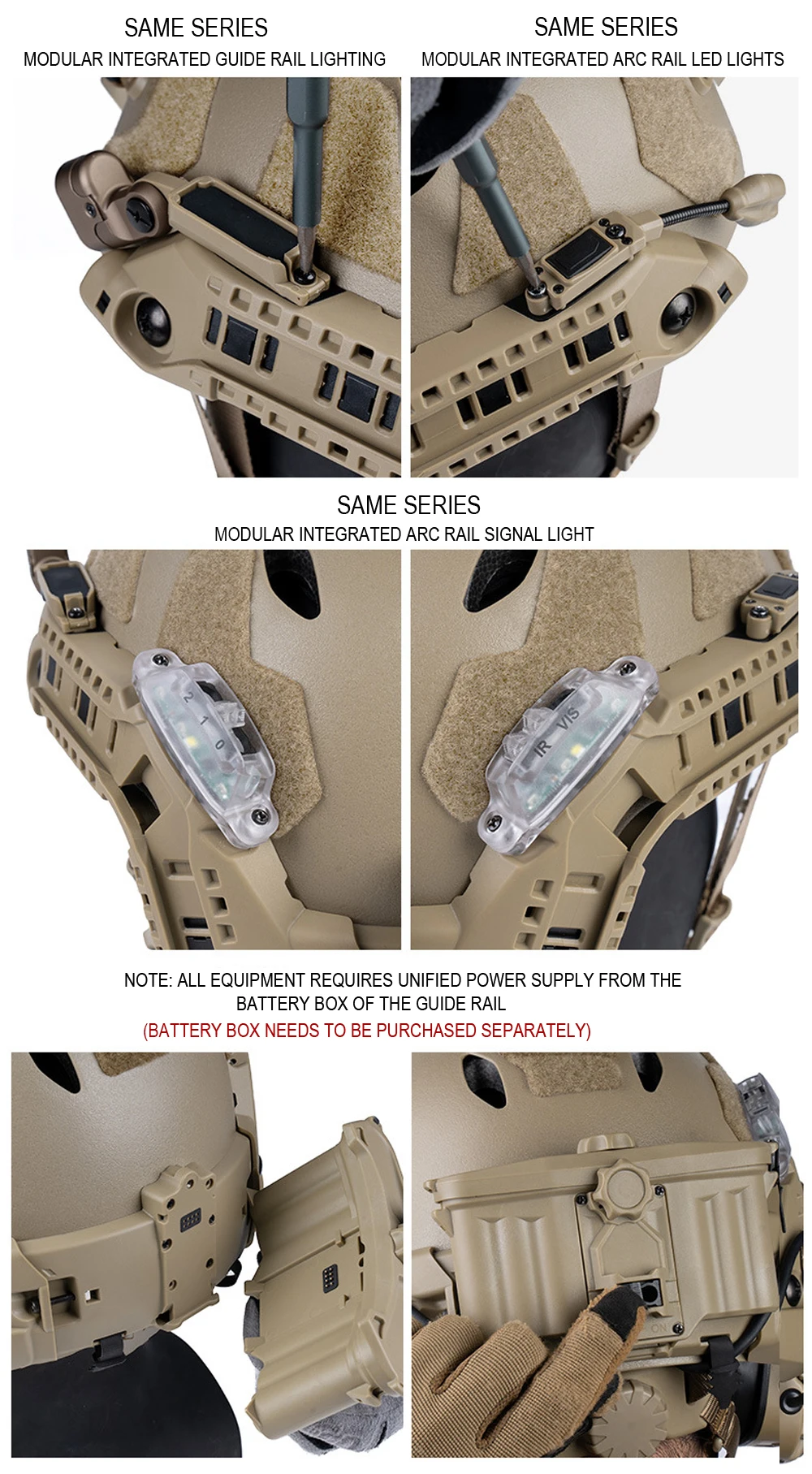 Riel de guía lateral para casco táctico, riel de montaje de casco de arco modular para casco de corte alto rápido, luz de señal/linterna/sistema de alimentación de luces IR