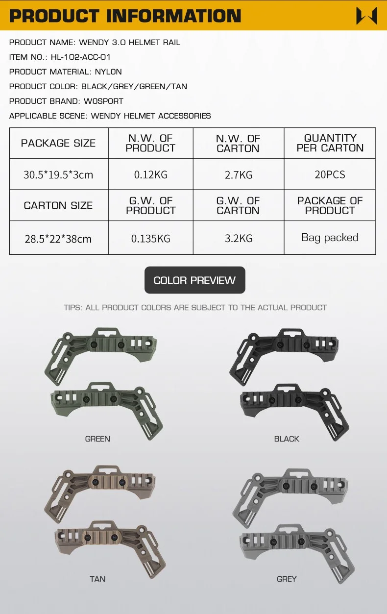 Riel guía lateral para casco táctico Wendy 3,0, repuesto de riel de montaje para casco de M-LOK para Airsoft, accesorios para casco rápido, 2 uds.