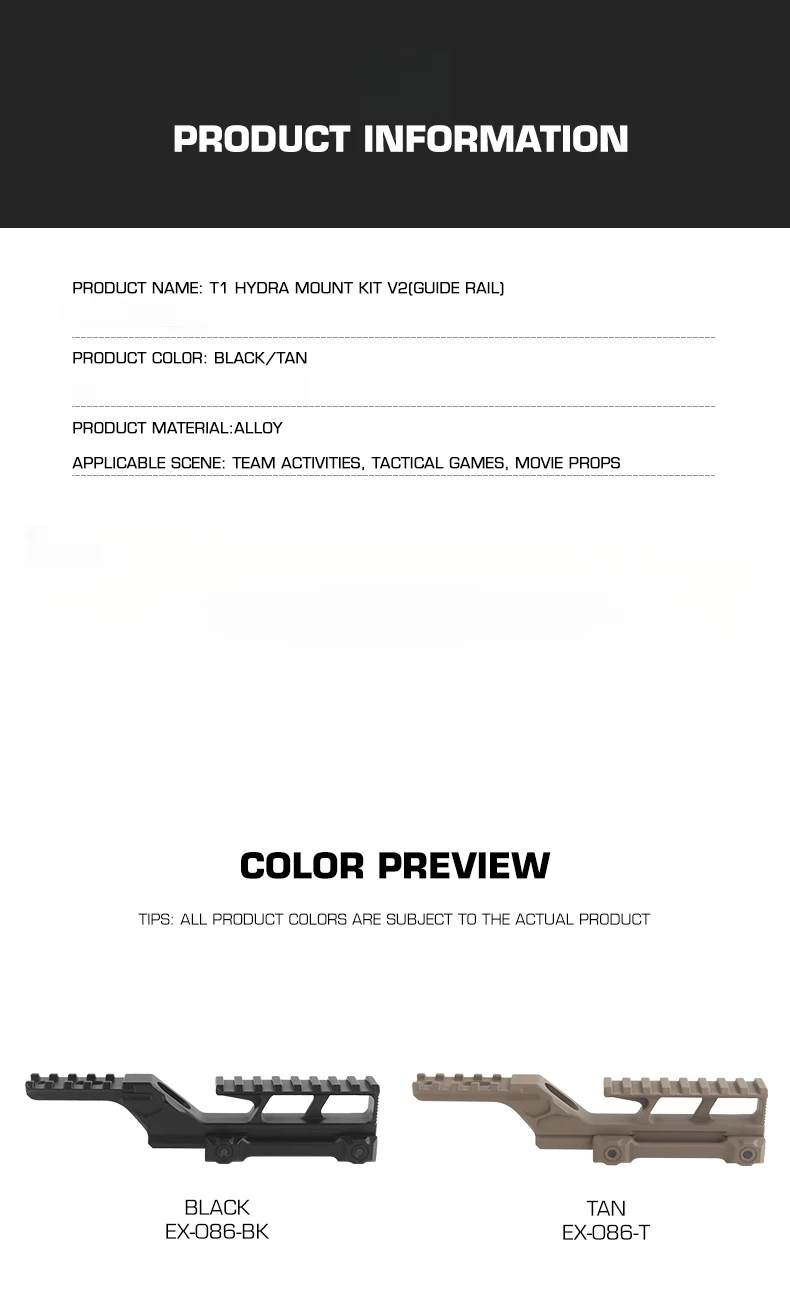 Kit de Montaje Táctico de Aleación para Riel Guía T1 Hydra V2, Accesorios de Caza para Exteriores, Equipo de Entrenamiento Airsoft.