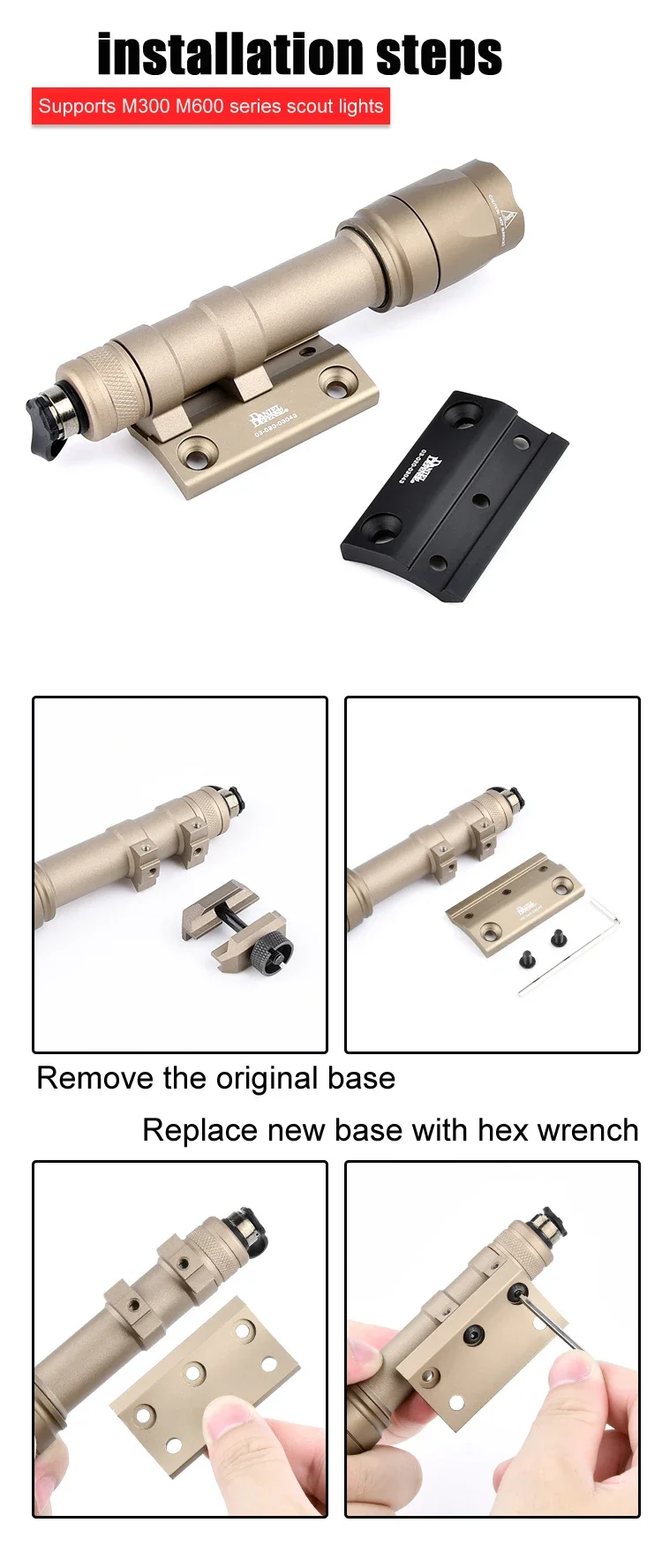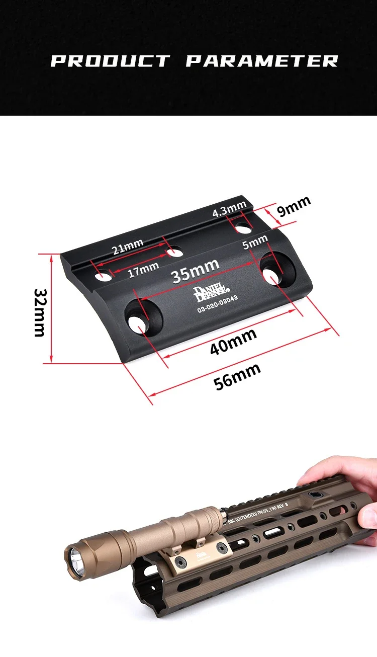 Riel de M-LOK para luz de explorador SF M300 M600, montaje lateral DD CNC Keymod, Base de linterna táctica, accesorios de caza
