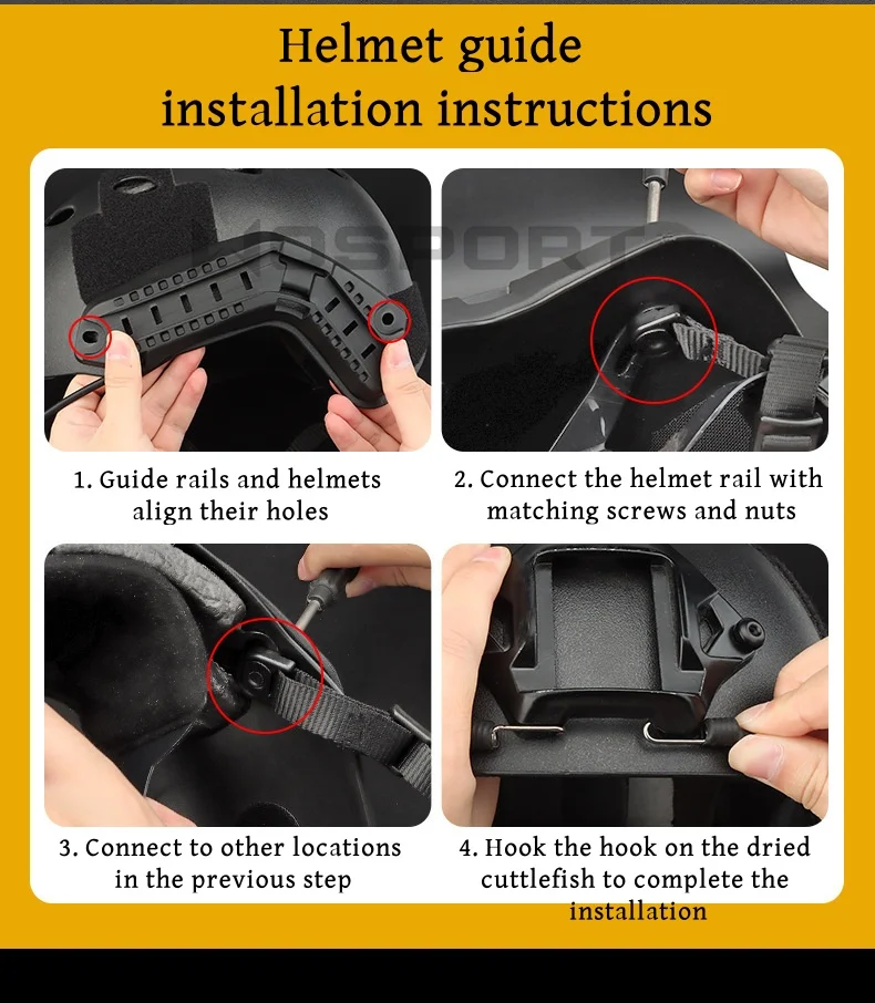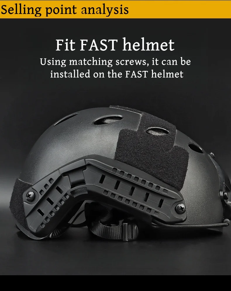 Riel de montaje de riel de guía lateral para casco rápido al aire libre, accesorios para casco, 1 Juego