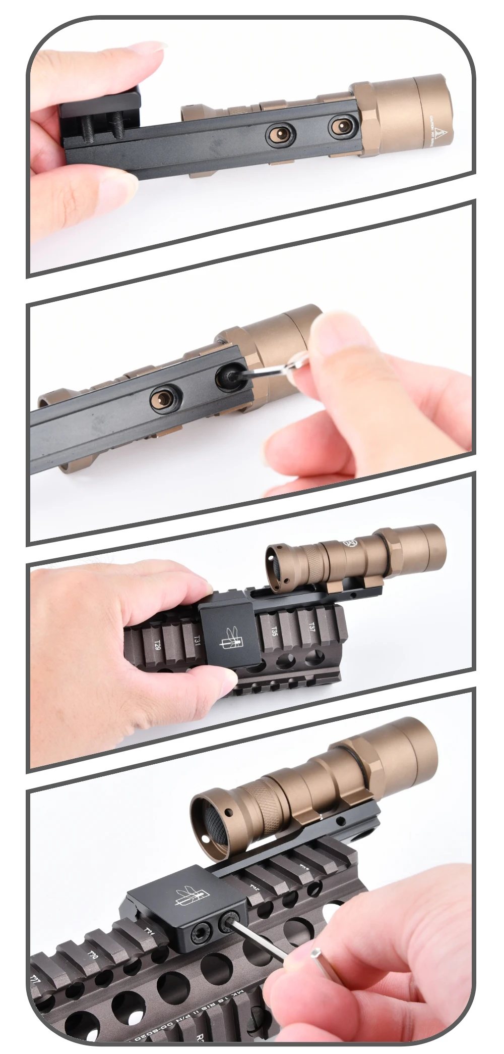 Riel Picatinny de 20mm, barra larga adaptable compensada, luces de montaje para Rifle Surefire M300 M600, Base de linterna para arma, accesorios Airsoft
