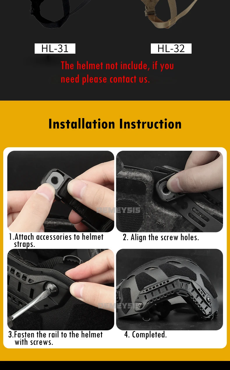 ● Con este riel lateral del casco, puede conectar luces, láseres, cámaras u otros dispositivos al casco mediante el adaptador de cola de milano de riel de arco estándar (no incluido).