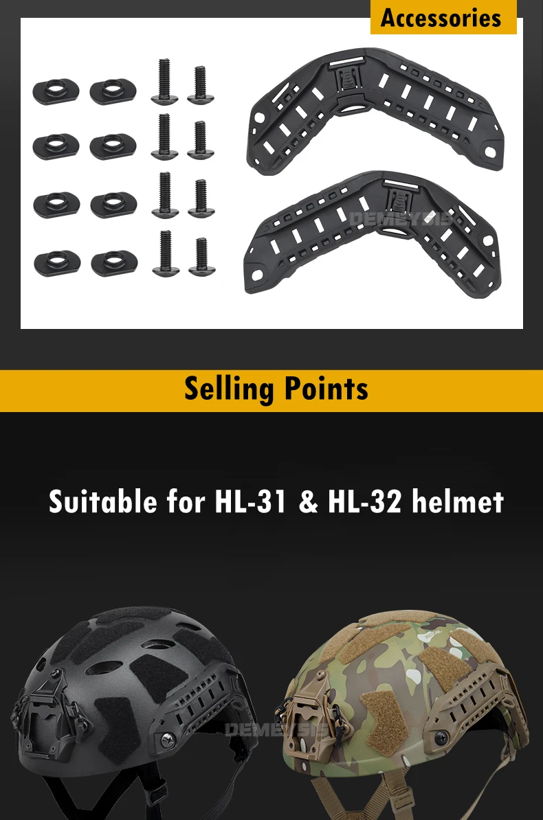 ● Con este riel lateral del casco, puede conectar luces, láseres, cámaras u otros dispositivos al casco mediante el adaptador de cola de milano de riel de arco estándar (no incluido).