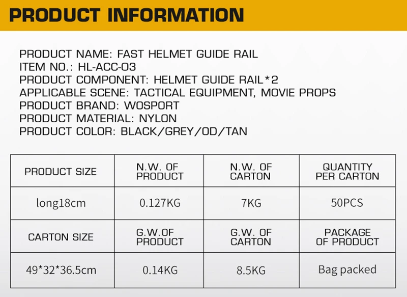 Riel guía de casco RÁPIDO- Accesorio táctico y listo para cine