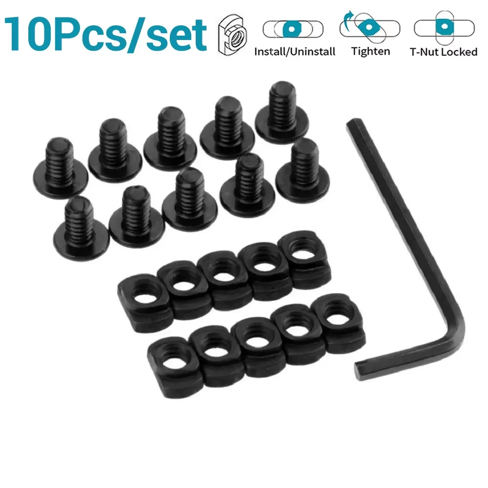 10 Uds. Rieles de repuesto de tornillos y tuercas M-LOK juego de repuesto de tornillos con tuercas en T para secciones de riel de guardamanos MLOK accesorios para pistola de caza