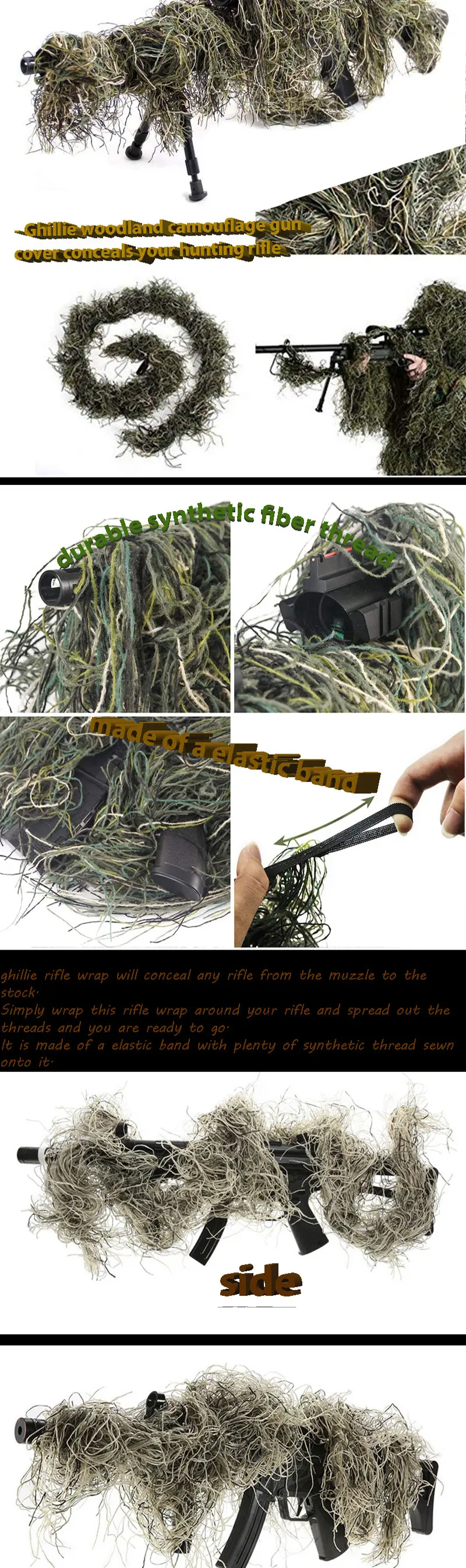 Ghillie Wrap to conceal your gun. Gun wrap can provide a perfect cover for firearms,a must for outdoor hunting and shooting.