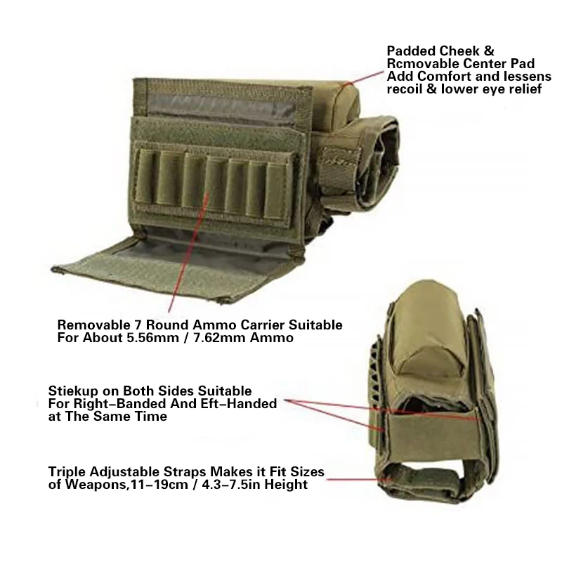 Reposo para mejillas ambidiestro para adaptarse a la mayoría de las compuertas de rifle fijas