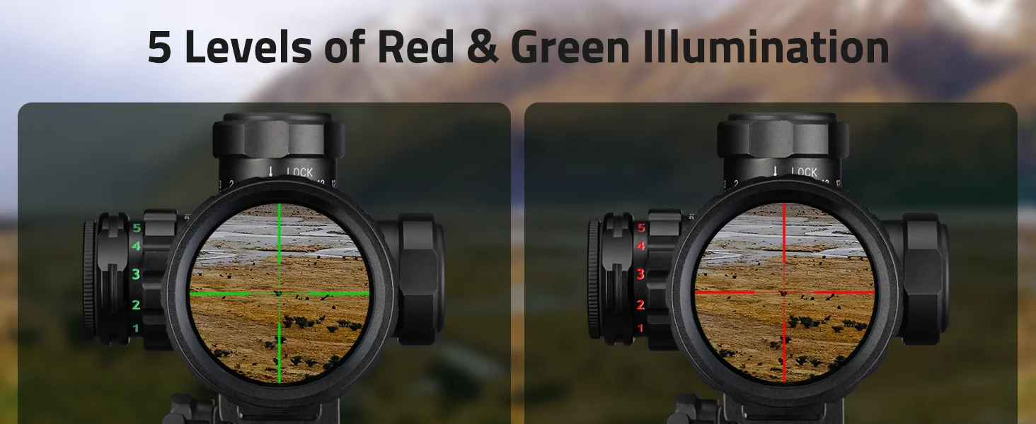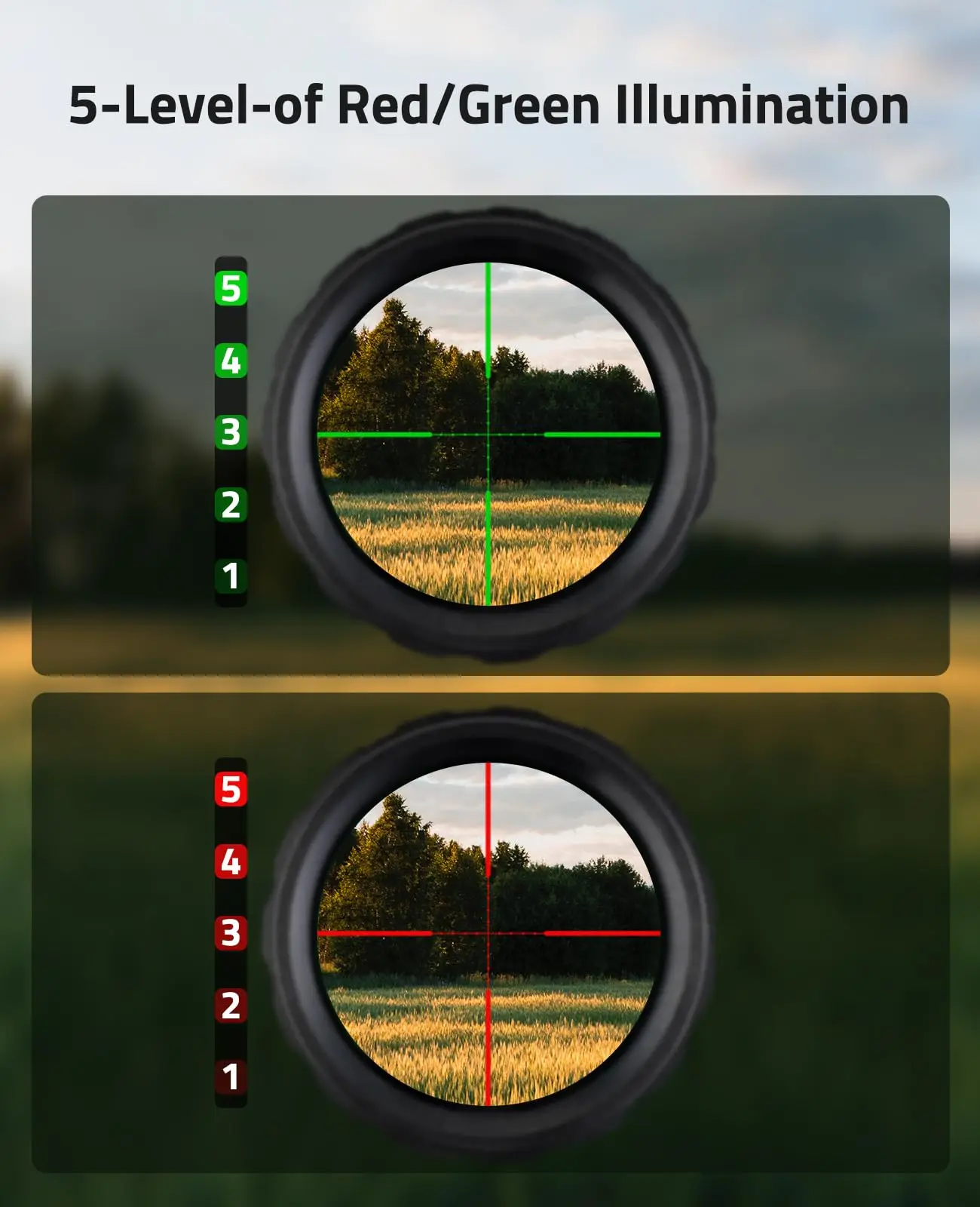 Lentes HD y retícula iluminada de vidrio grabado: las lentes completamente multicapa proporcionan una excelente transmisión de luz y reproducción de color para mejorar la claridad de borde a borde. Combinado con retícula de doble iluminación de vidrio grabado, mejora el rendimiento con poca luz y te permite ver los detalles claramente en diferentes condiciones de iluminación.