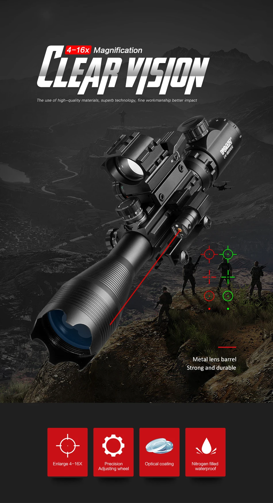 Rifle óptico táctico 4-16x50 EG, mira holográfica de 4 reflejos, punto rojo con Combo láser, pistolas de aire de caza