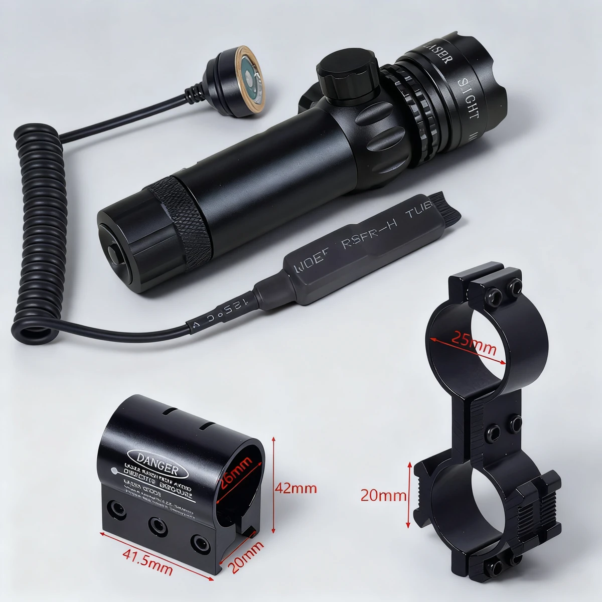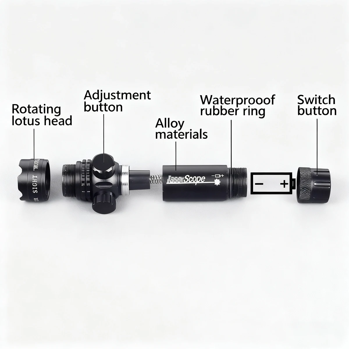Especificaciones:Batería: 1 pila CR123A de 3 V (¡¡¡no incluida!!!!!!)LUZ LS Potencia de salida: 1 mwLongitud de onda:Láser verde 532 nmLáser rojo 635 nmMaterial: Aluminio