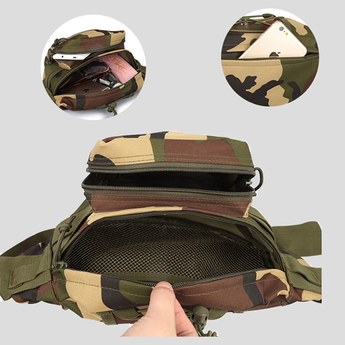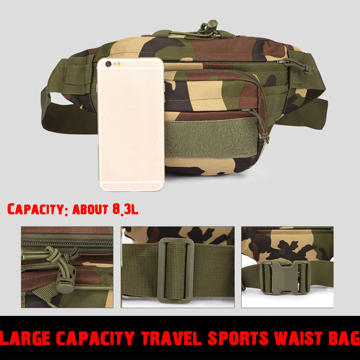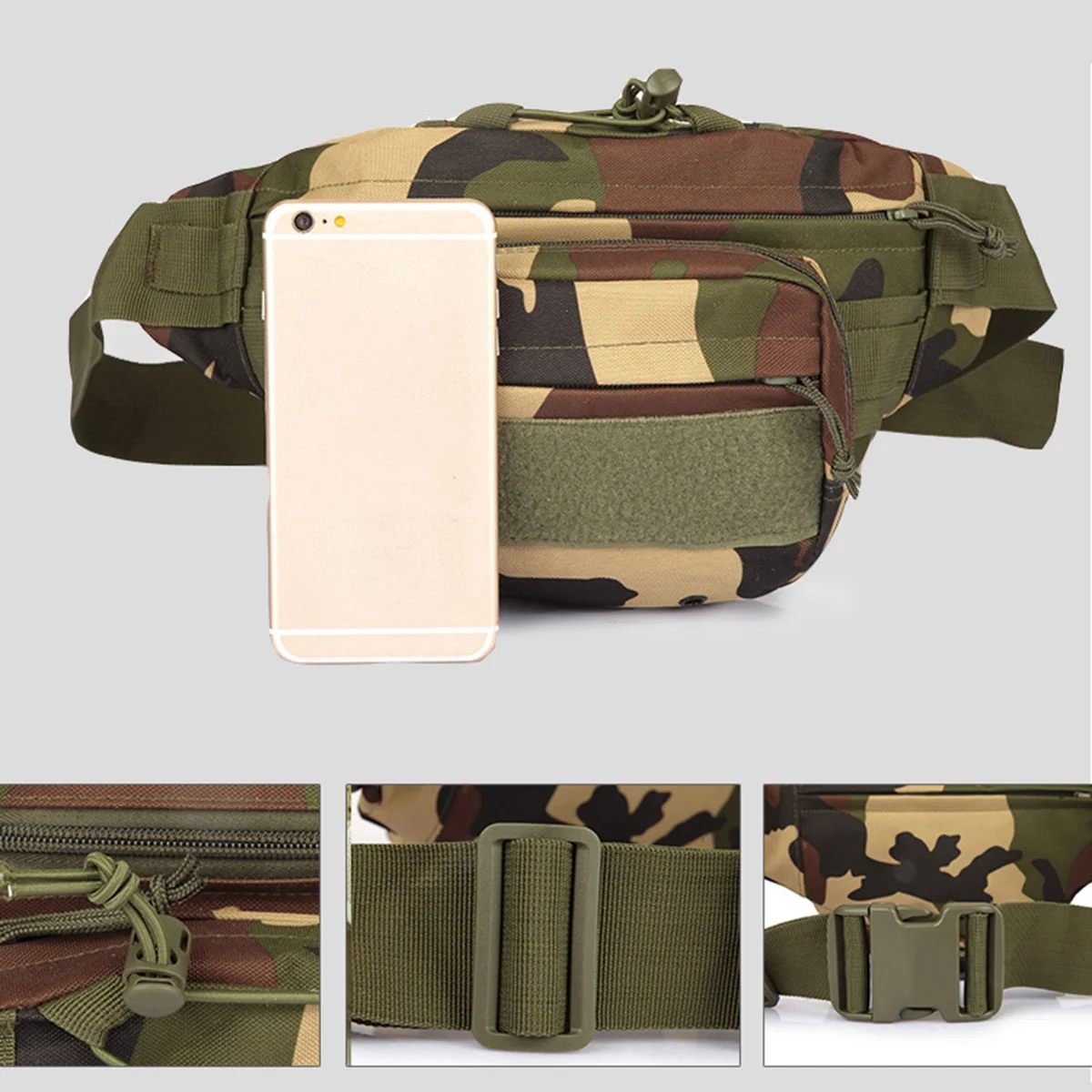 Riñonera deportiva de viaje de gran capacidad, bolsa de camuflaje militar, multifunción, para teléfono móvil, impermeable, para exteriores