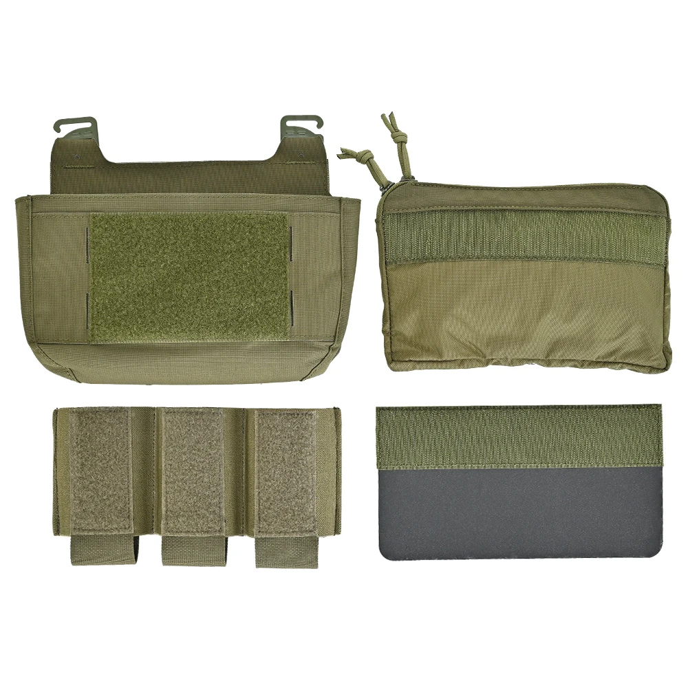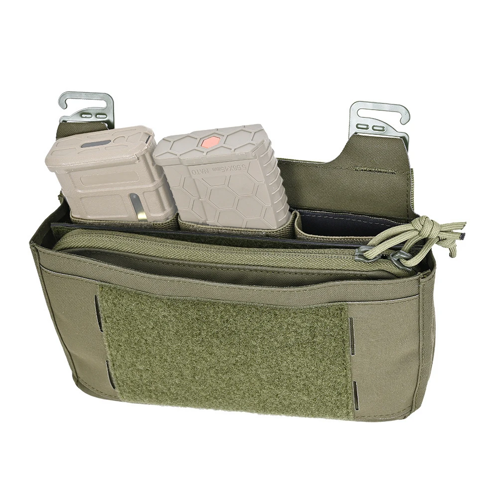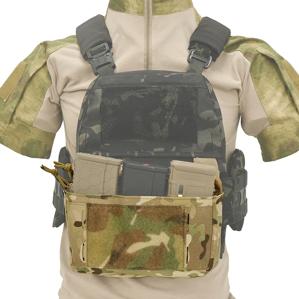 Riñonera DOBLE con solapa frontal, triple revista, bolsa Kangroom, inserto para portaplacas, aparejo de pecho, chaleco táctico de caza, gancho en G