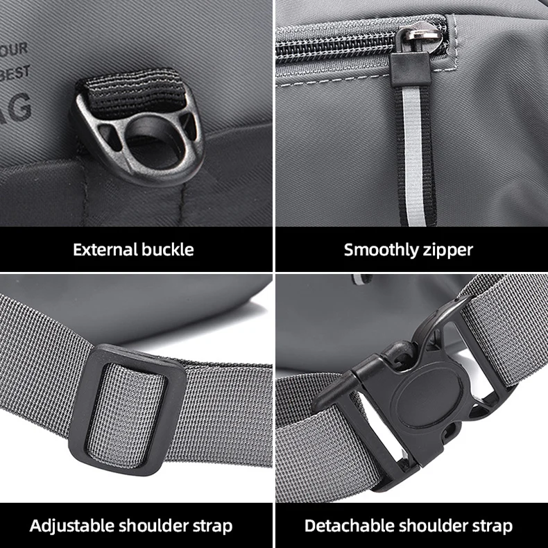 2.Accesorios resistentes y duraderos: diseño de correa para el hombro ensanchada, práctico cabezal con cremallera, casquillo para la correa para el hombro y hebilla de conexión para la correa para el hombro.
