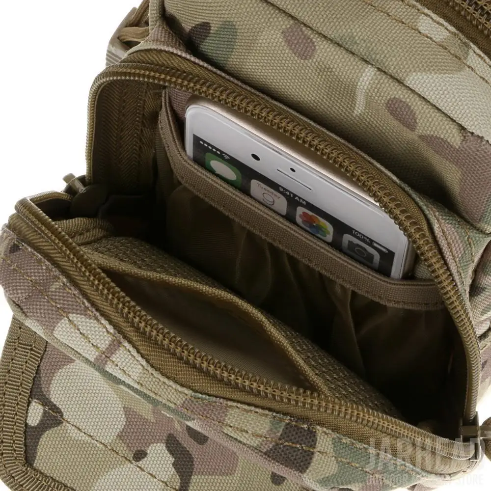 Se puede colgar en varios equipos con sistema Molle/PALS o cinturón