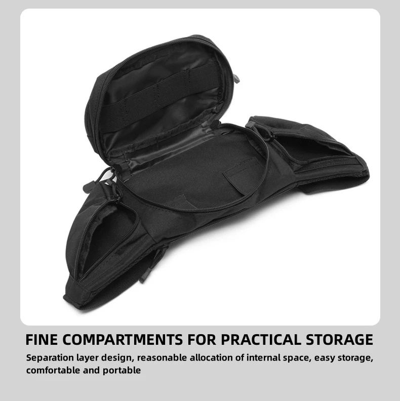 Con la exclusiva ranura de clip integrada y el diseño de bucle de gancho, la pistola se puede fijar en el lado izquierdo o derecho de la bolsa principal de acuerdo con sus hábitos.
