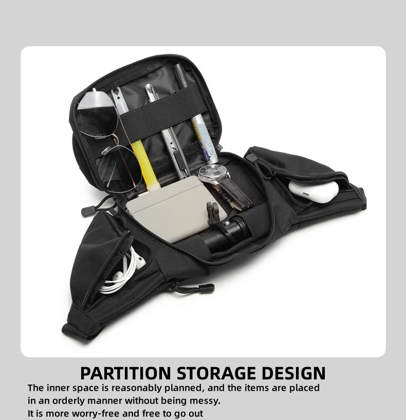 Diseño único multifuncional de tres capas impermeable, con dos bolsas triangulares en los dos lados.