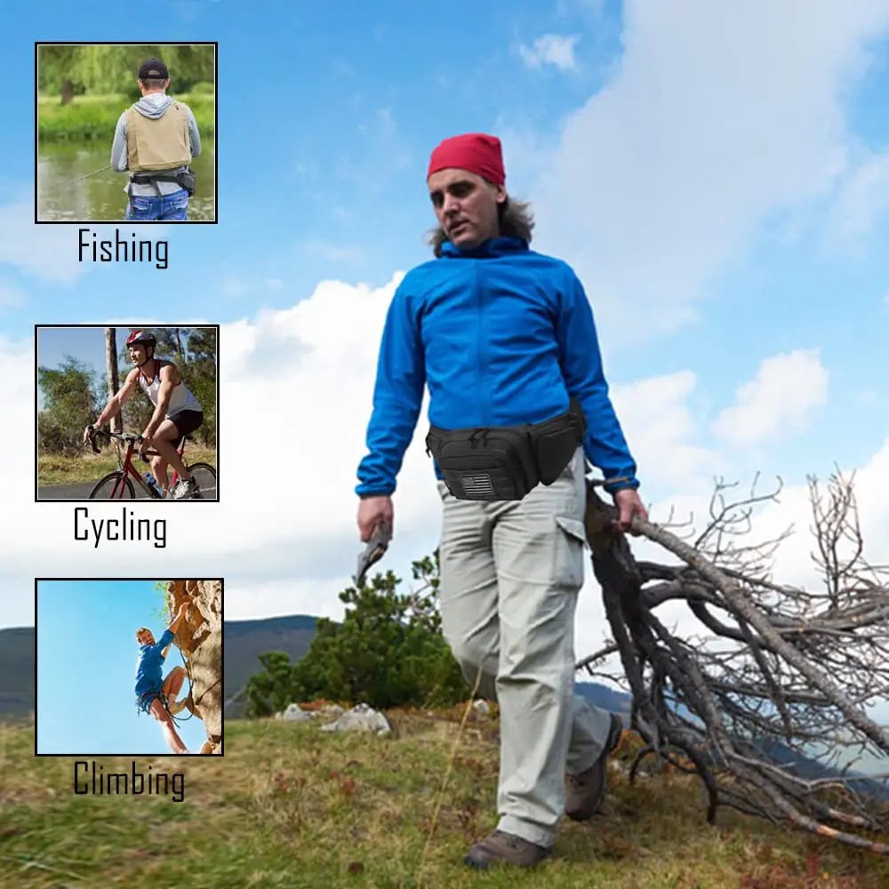Gran Capacidad: Este mens Fanny Pack contiene cinco bolsillos con cremallera. El compartimento principal en el medio puede contener Teléfono, BILLETERA, cigarrillo, etc. Y hay una correa elástica para mantener sus artículos de forma segura con menos ruidoso. El compartimento trasero también es lo suficientemente profundo para sus dispositivos personales como dinero, monedas, crédito. El bolsillo delantero puede almacenar sus artículos de pesca y el Pequeño bolsillo en cada lado puede llevar su encendedor, goma de mascar.