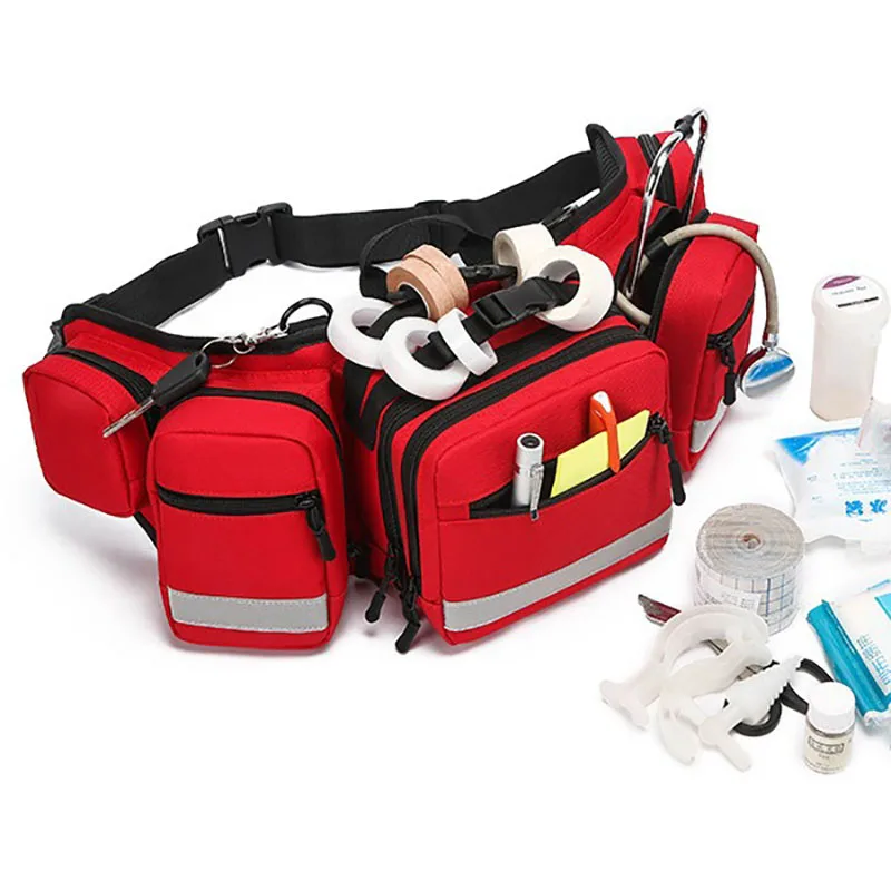 Riñonera de primeros auxilios, almacenamiento médico, riñonera de rescate de viaje roja, bolsa vacía, bolso de hombro compacto con bolsillo para medicina de supervivencia