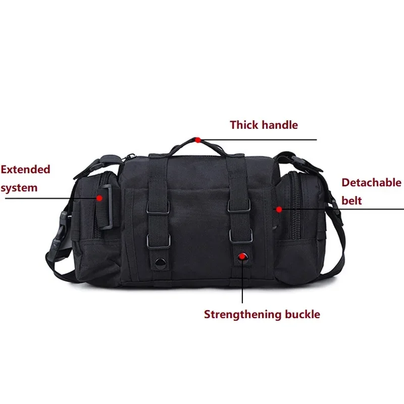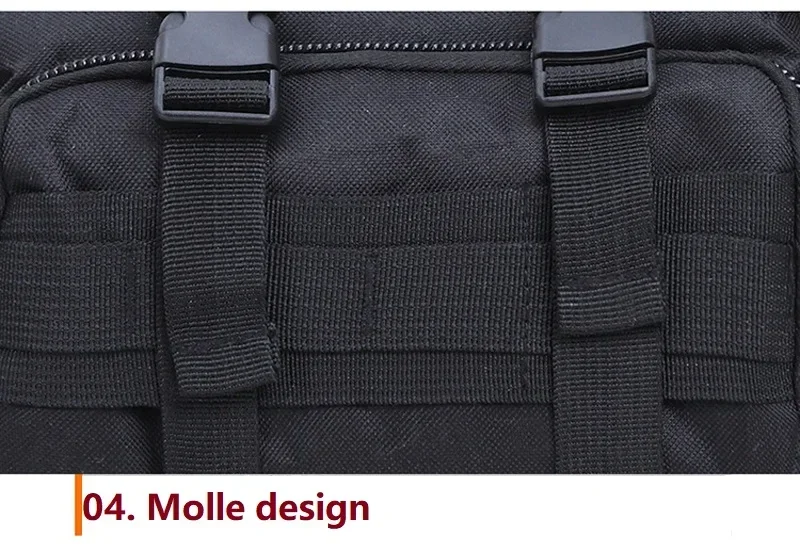 - Diseño del sistema Molle, se puede acoplar a una bolsa pequeña, accesorios para bolsas, hervidor, etc.Puede ampliar la capacidad para acomodar más artículos