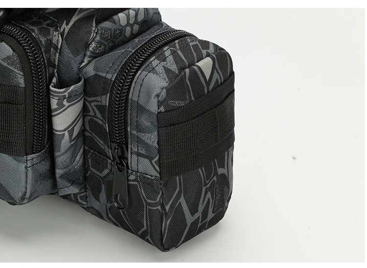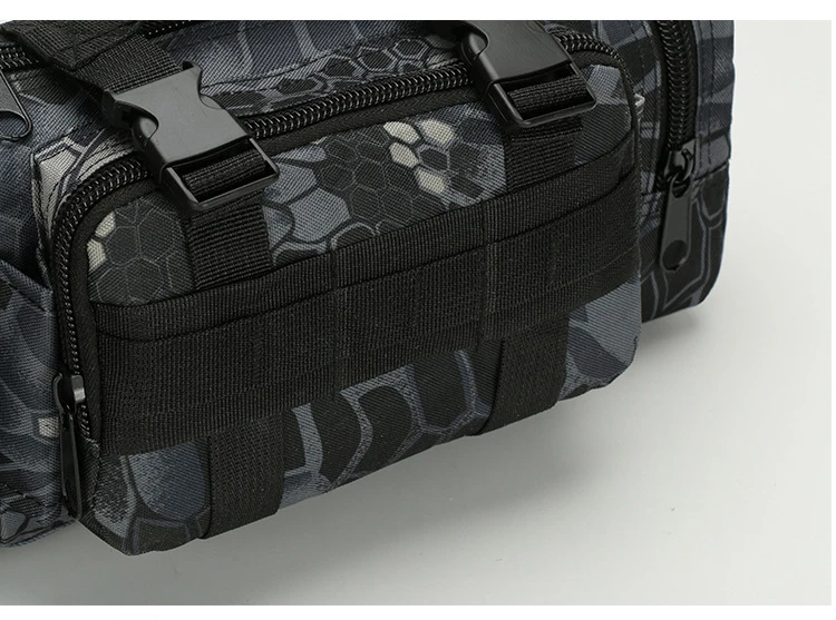 Nombre: riñoneraTejido: tejido impermeable Oxford 600DInterior: tela impermeable de nailon 210DCapacidad: 5LUsos: bolsa al aire libre, bolsa de senderismo, bolsa de montar, bolsa de ocio, bolsa táctica militar, riñonera 3P.