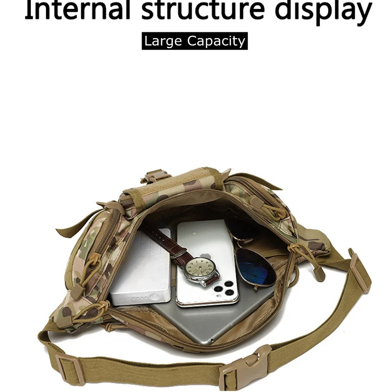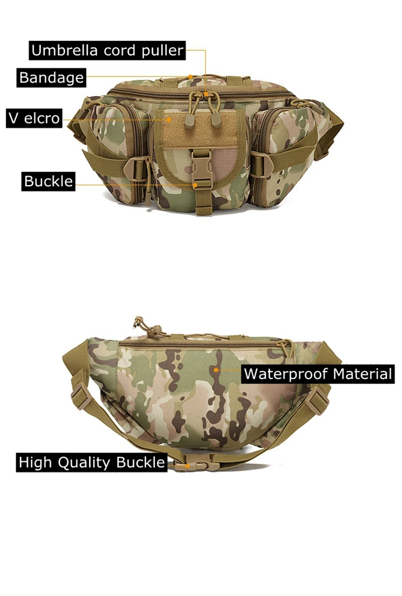 Cinco bolsillos de diferentes tamaños que satisfacen completamente sus necesidades básicas al aire libre. El Gran compartimento principal es lo suficientemente grande como para llevar su iPad Mini, teléfono móvil, MP3, gafas, linterna táctica, brújula, tetera, cigarrillo, aperitivos, paraguas, etc. El BOLSILLO TRASERO con cremallera está oculto para una protección adicional sobre su pasaporte, tarjeta de identificación, tarjeta de crédito, billetera y artículos esenciales. Se pueden usar tres bolsillos delanteros para guardar sus dispositivos y piezas pequeñas.