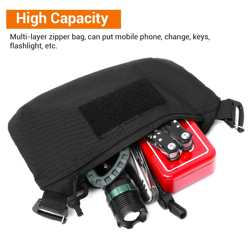 【Riñonera táctica 】 La riñonera EDC portátil para exteriores tiene 2 bolsillos y correa ajustable. El bolsillo principal puede contener linterna, teléfonos y cualquier otra herramienta EDC. El bolsillo trasero es bueno para guardar dinero en efectivo, llaves, tarjetas y otros objetos importantes. Satisfaga la mayoría de sus necesidades diarias de almacenamiento.