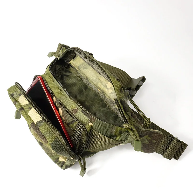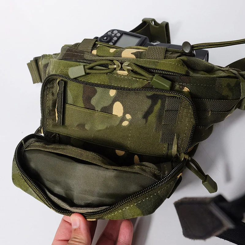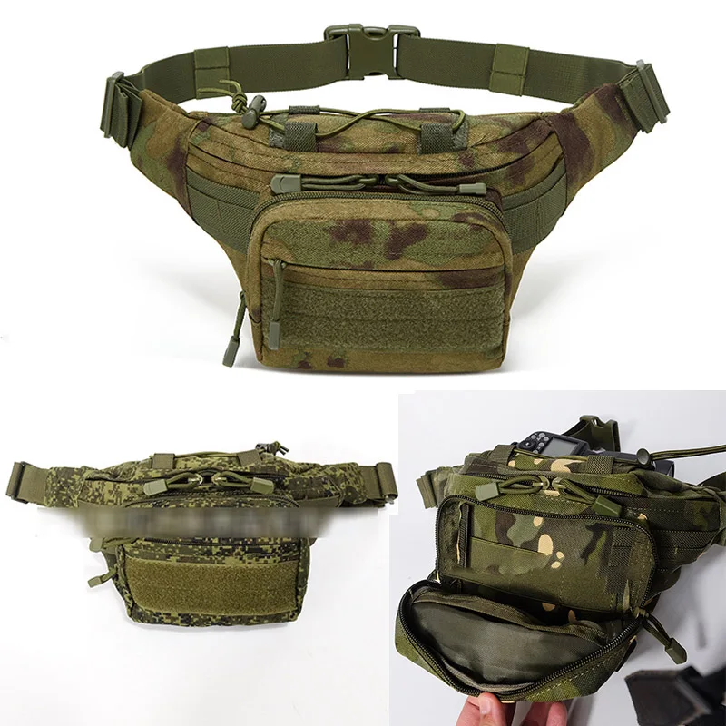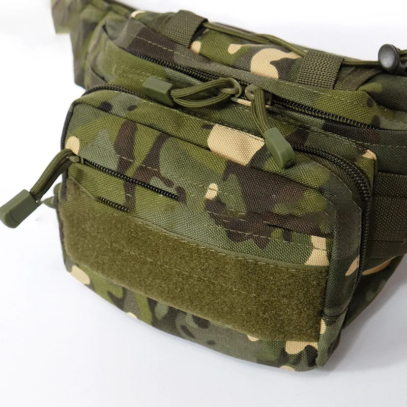 Riñonera táctica multifuncional para acampar y ciclismo, resistente al desgaste, MOLLE, resistente al agua, camuflaje verde